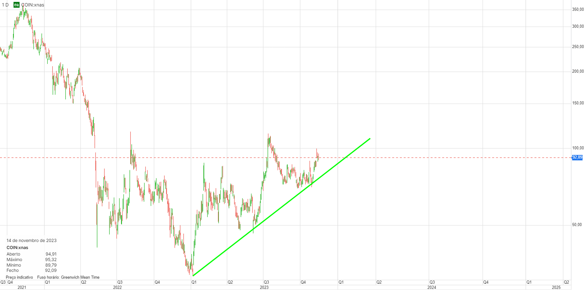 Coinbase - Uma onde tenho uma posição negativa....esta tb era daquelas que ia subir até ao céu....