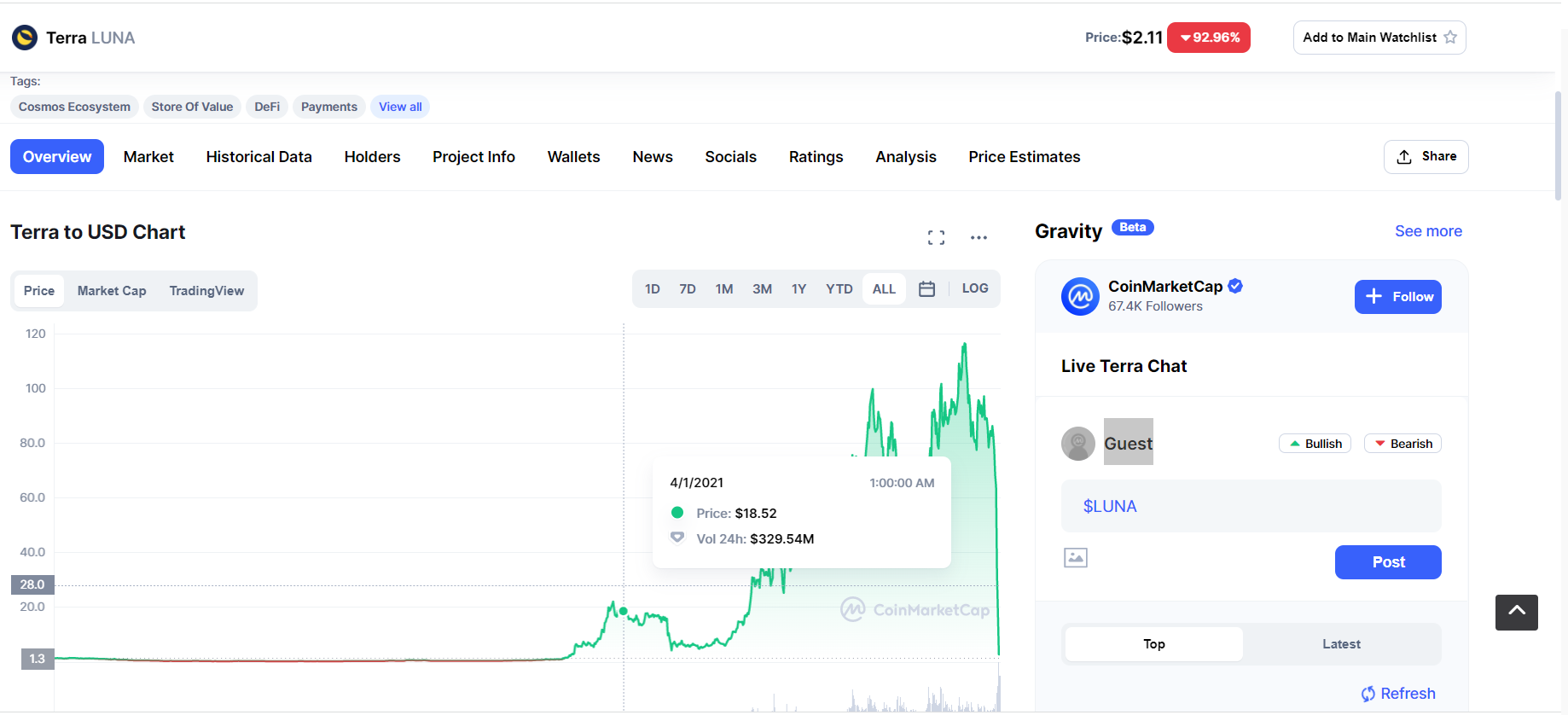 2 - A stablecoin UST da rede TERRA é uma stablecoin algorítmica diferente da USDT ou USDC. O preço da UST é mantido com base num conjunto de criptomoedas, grosso modo por bitcoin. As vendas massivas de UST que foram feitas dão sinais que foi uma operação com objetivos concretos e fez com que a UST fosse aos 0,2x quando deveria valer sempre 1. Também foi uma das causas da bitcoin ter caído nos últimos dias.
