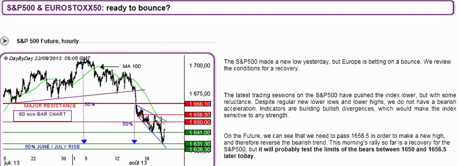 Fica a visão da DaybyDay.Atenção que no ultimo ano cada tiro da DaybyDay é meia dúzia de clientes que vai desta para melhor.Erram que se fartam.De qualquer forma, acho que hoje o mercado vai estar positivo.Fez ricochete na mm100 e é natural haver um mini bouce.Mas ali pelos 1656 há lá uma avalanche de ursos prontos a carregar em cima.Cuidado!Eu estou fora!Há locais mais interessantes onde se pode estar!