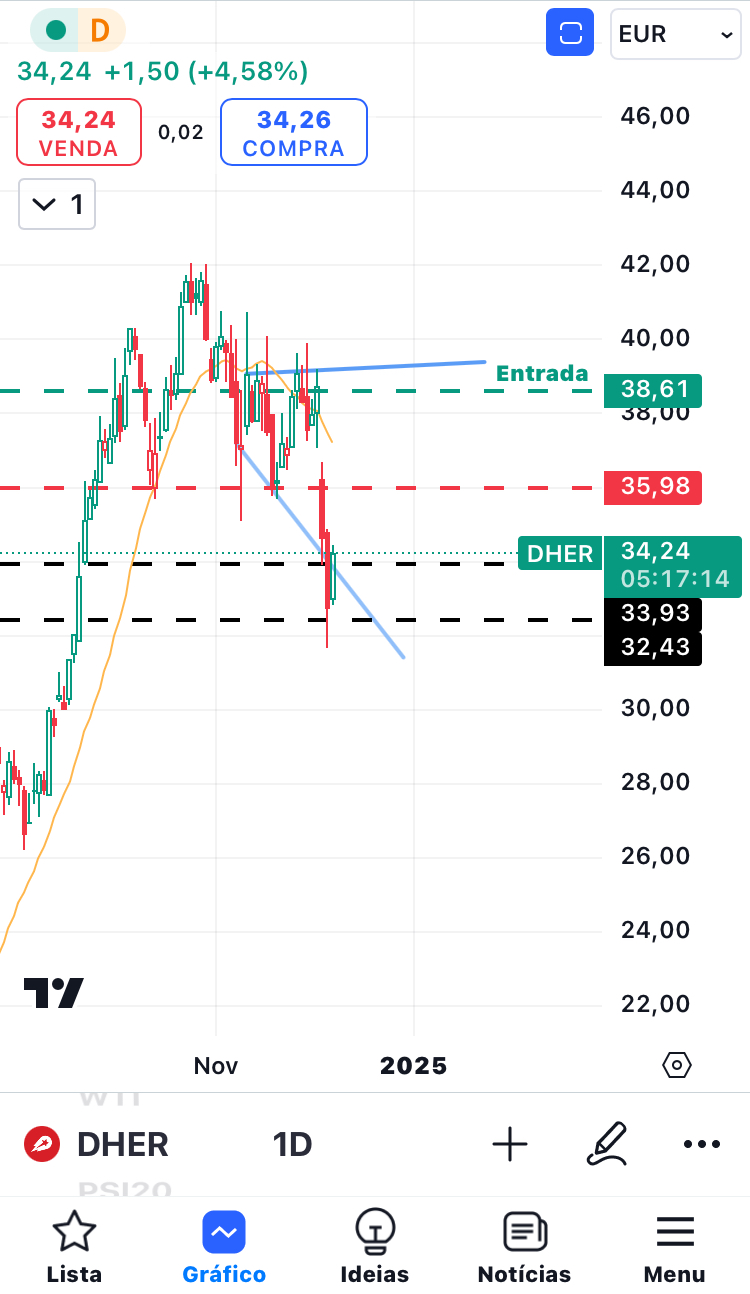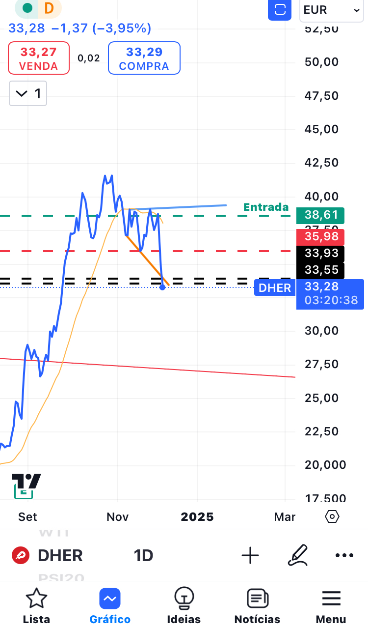 A DHER desceu ontem 10% por causa de uma noticia que saiu, e hoje também está a descer, mas menos: