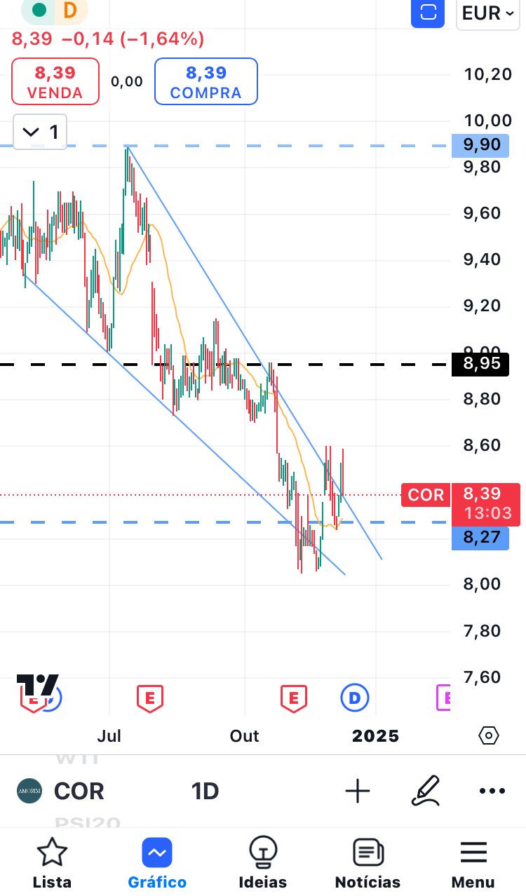 Acho que a ação está numa zona onde pode reagir. Desde janeiro de 2021, desce 76% e entre janeiro de 2021 e janeiro de 2024 desceu 88%. Comprei porque a nível fundamental está a melhorar e tecnicamente achei que era uma grande oportunidade para médio prazo. No entanto, com a notícia ficou mais complicado, mas ainda estou otimista. Seria bom que ela parasse de descer e começasse a subir em breve.
