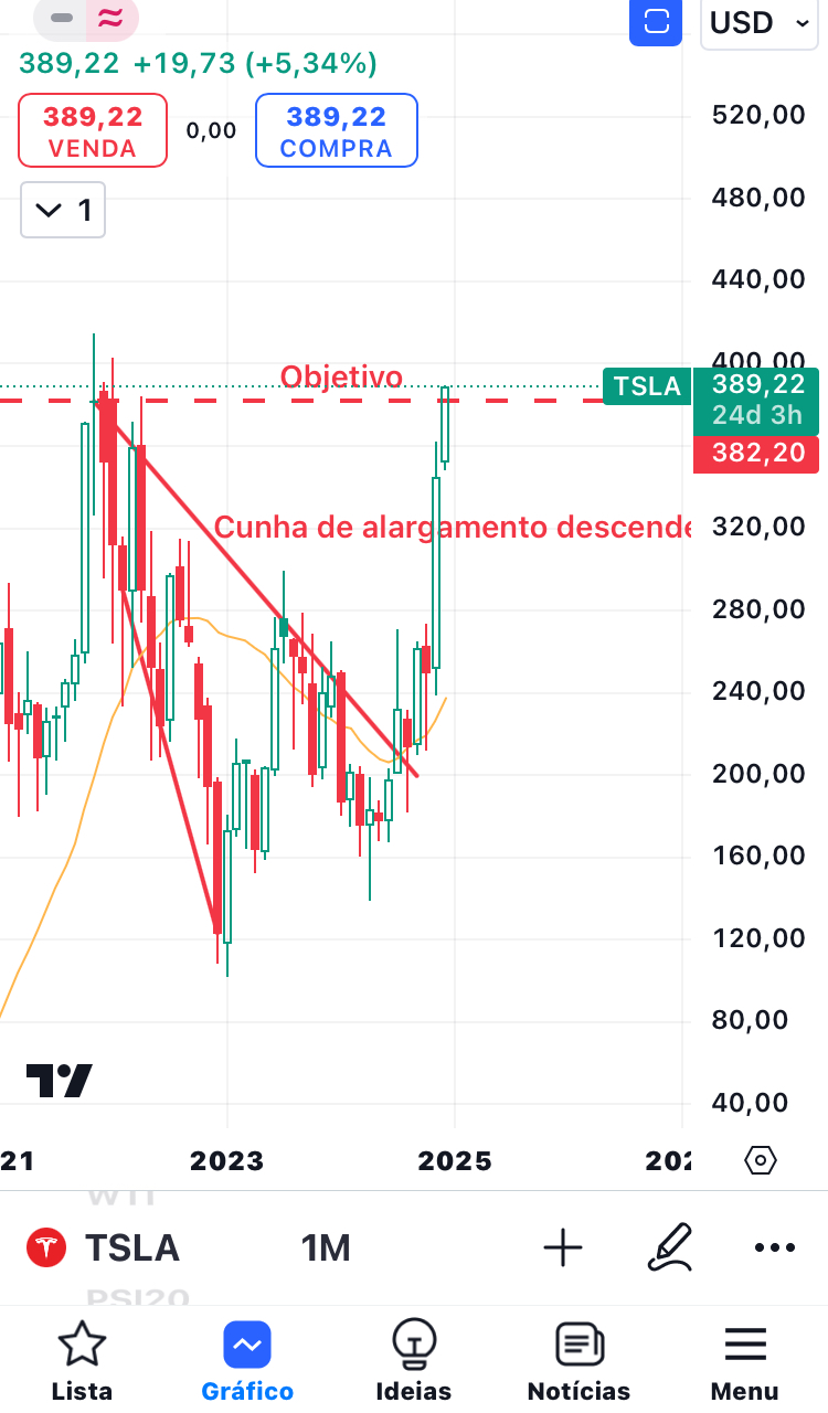 Vou retirar a TSLA da lista das cunhas, porque já atingiu o objetivo.