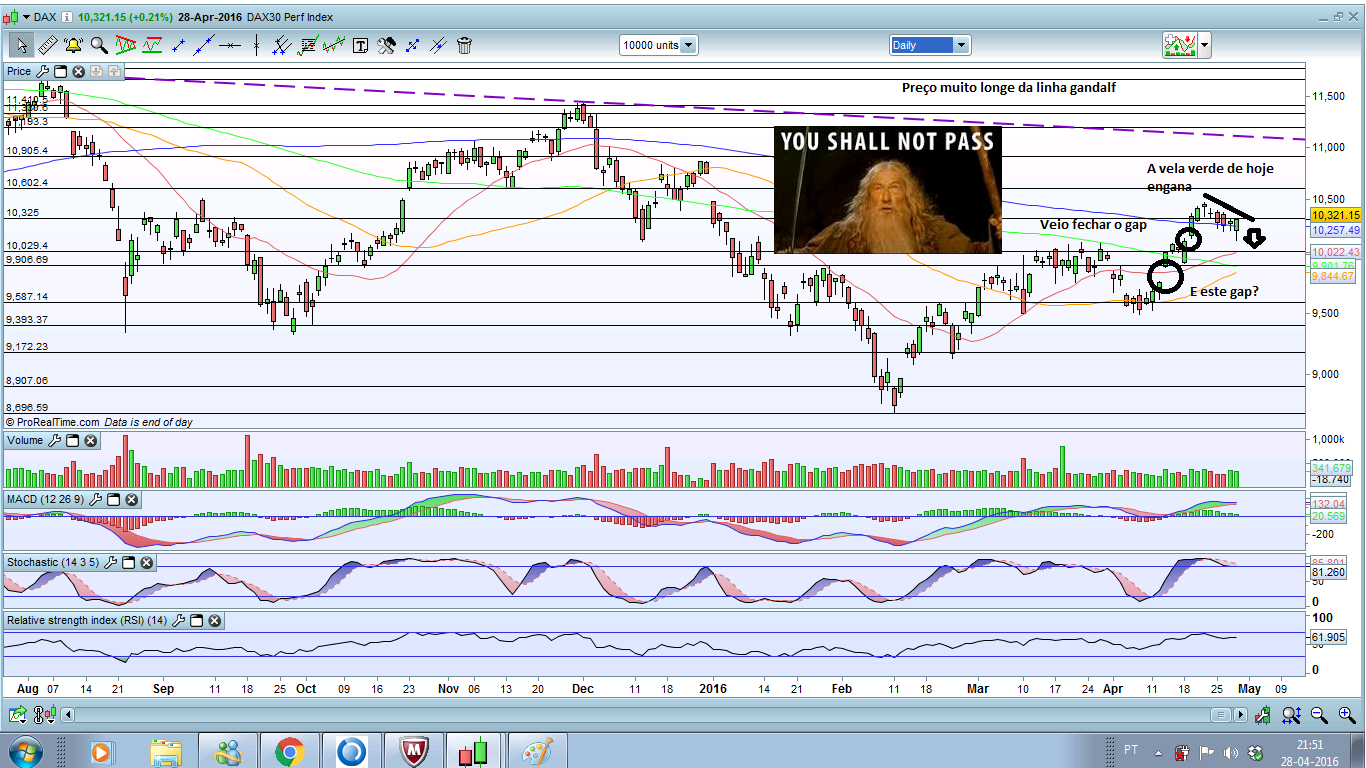 Portanto é bem possível que haja ressalto na segunda e que isso possa influenciar o DAX. mas realmente se fosse aos 9700 e tal e fechasse o gap, era ouro sobre azul...