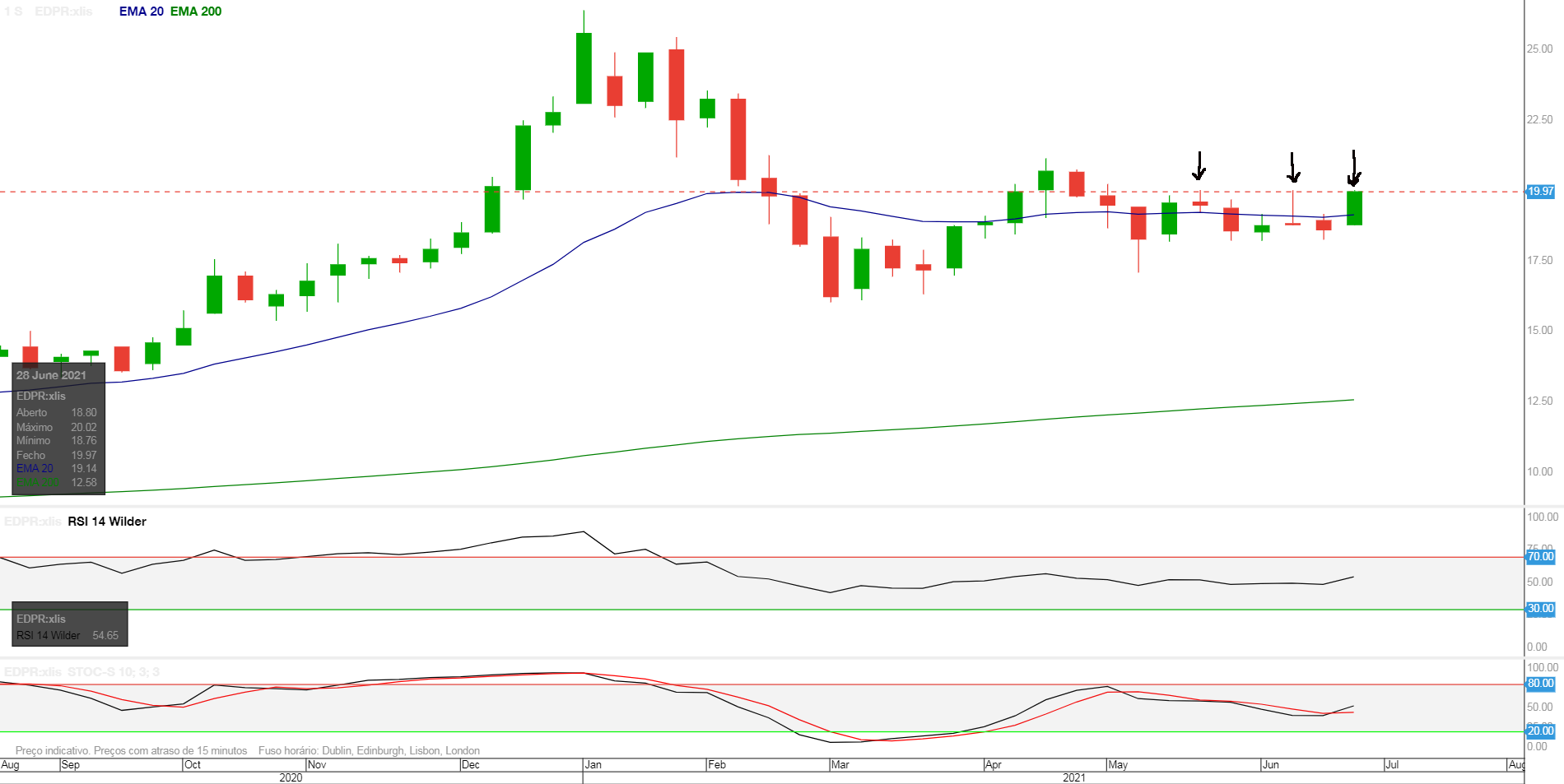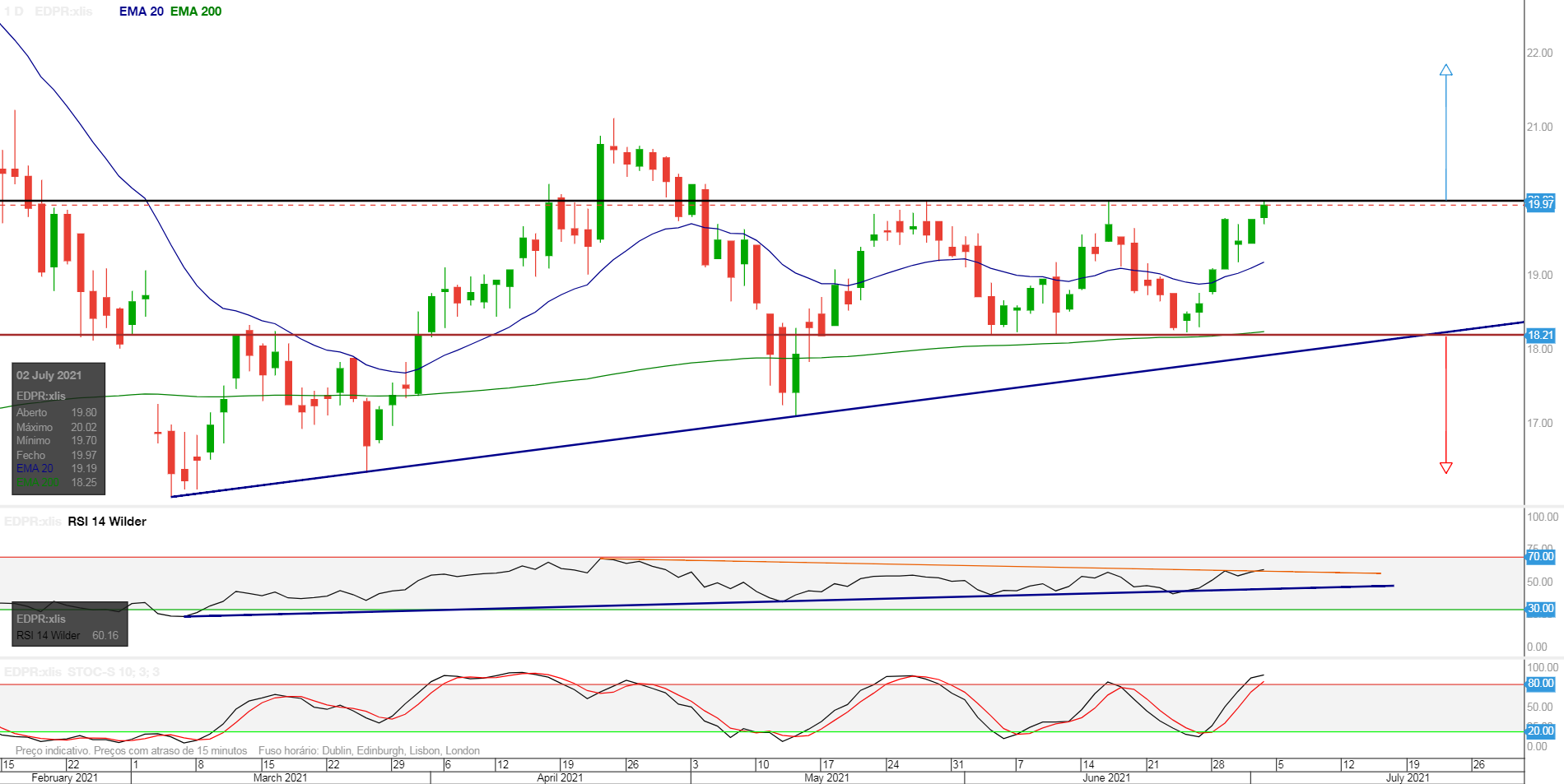 Edit: para quem fica parece-me que está com um triplo topo nos 20 que se é rompido vale pelo menos o degrau seguinte até aos 21... a acompanhar de perto