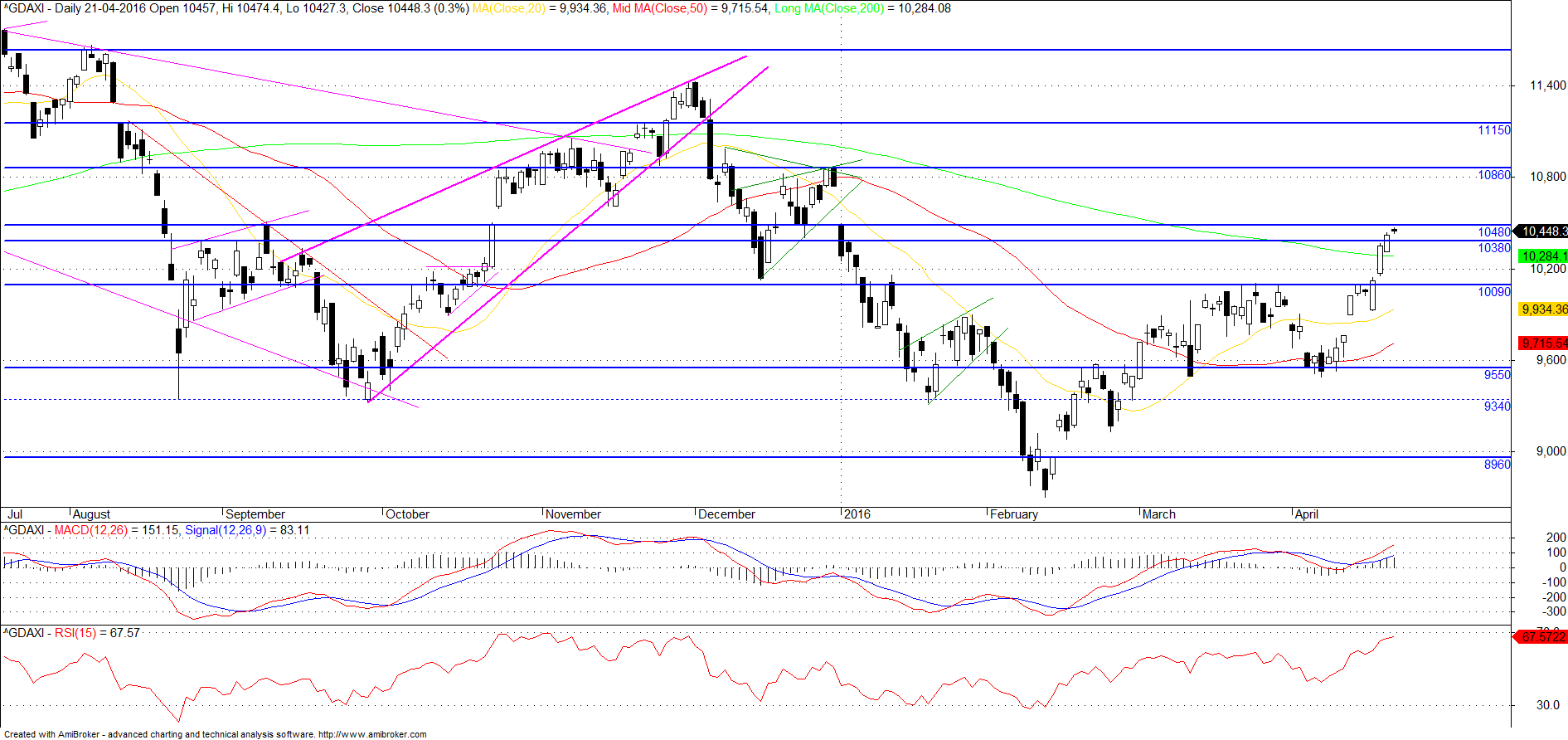 O estar em cima das BB só mostra força e aquelas velas, ui, então a de ontem n via há muito tempo...RSI ainda nem chegou aos 70...pode haver agora alguma retracção dado que os 10400-10500 são uma resistência a ter em conta, mas com o EuroStoxx50 a quebrar hj uma zona daquelas, n sei n.... ninguém sabe... é aguardar