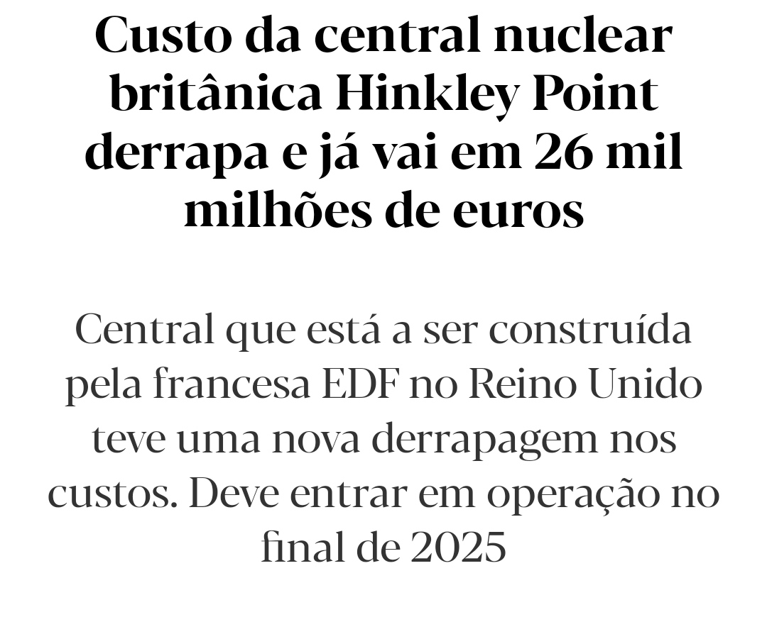 Façam as contas: com 600.000 milhões de euros, investidos em centrais nucleares, construíam-se 23 Hinkley Point. Ou mais de 600 centrais fotovoltaicas de 1.000 MW.
