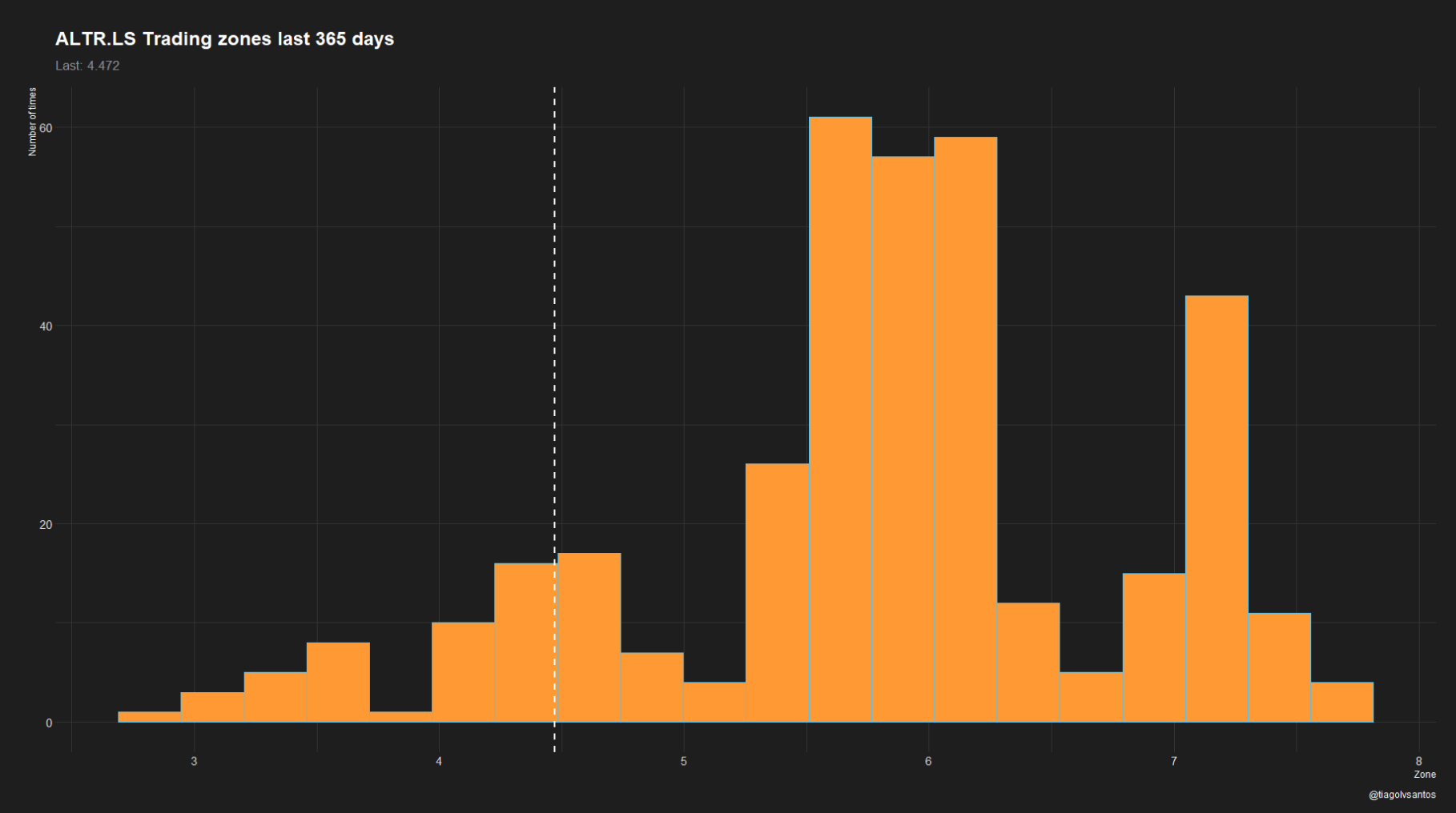 Existe uma parede enorme nos 4.50€, não passa disso desde abril salvo erro. Baseio-me igualmente nas cotadas "Navigator" e "Semapa" para tentar definir uma tendencia, e num dia como o de hoje de verde carregado a coisa não muda muita, portanto a minha perpectiva mantém-se a mesma a curto/médio prazo que é a da estabelização/descida.