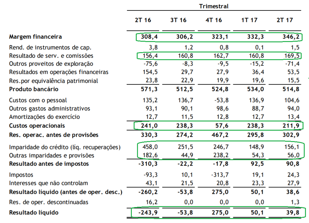 Ainda em relação aos resultados apresentados, o resultado core (margem financeira + comissões - custos operacionais) aumentou de 437.1M (1S16) para 558.6M (1S17), ou seja, +28% em apenas 1 ano! Revelando uma recuperação assinalável em termos de receita core e eficiência.