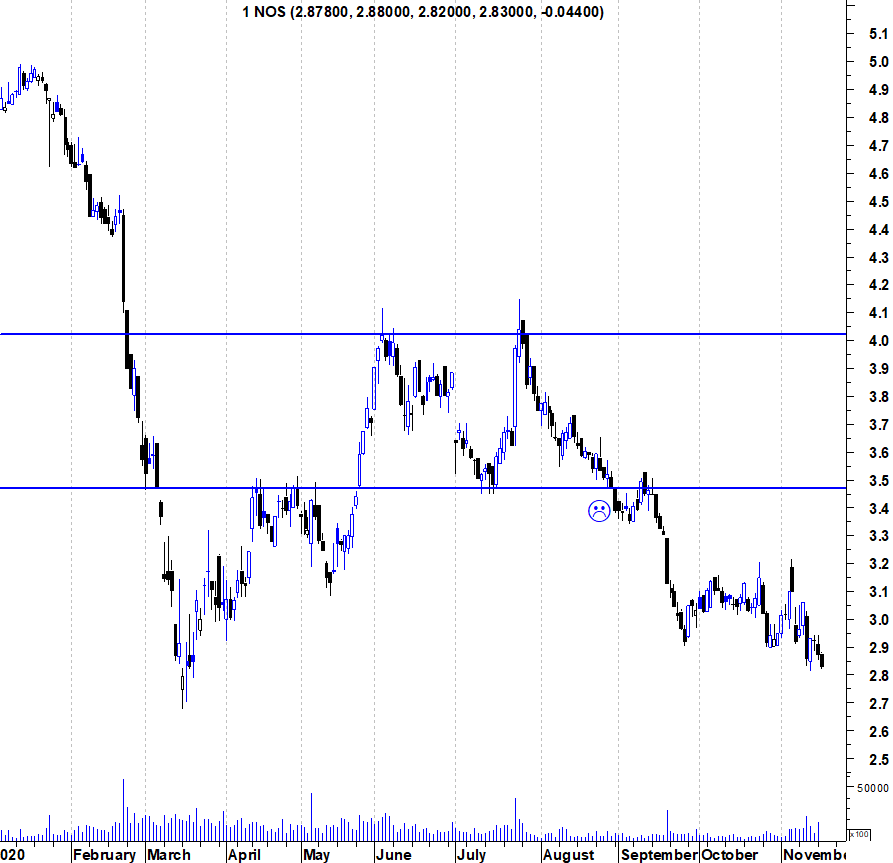 Ulisses Pereira Escreveu:Apesar das duas últimas semanas terem sido excelentes para a Bolsa portuguesa, a Nos não conseguiu acompanhar esse movimento, continuando a sua trajectória descendente. Mais um sinal de fraqueza relativa para a acção.