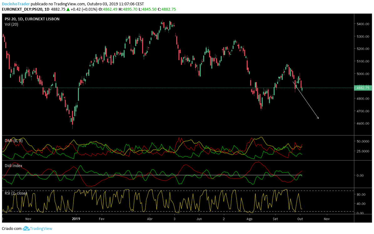 O PSI continua sem grandes novidades, abaixo da resistência decisiva entre os 5000 e os 5060 pontos.