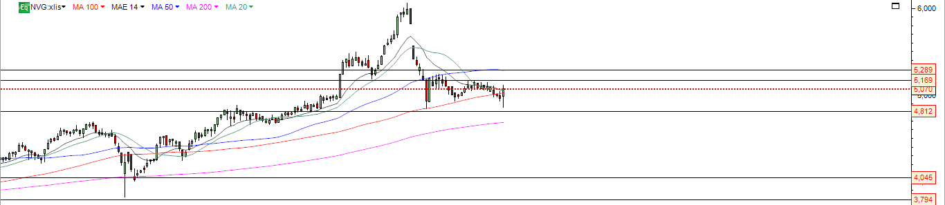 Nada contra quem está dentro, nem sugiro tão pouco que devam sair desta cotada. Todos teremos que avaliar os negócios por n´ós mesmos e seguir a nossa estratégia. A minha foi fechar a posição com mais valias pouco acima dos 5€, e aguardar por valores de reentrada, no entanto sem segurança nenhuma que esses valores seriam no suporte acima indicado ou até acima do preço de compra (caso desse novamente sinais de força). Tudo pode acontecer, e cá estarei para ver o que acontece.