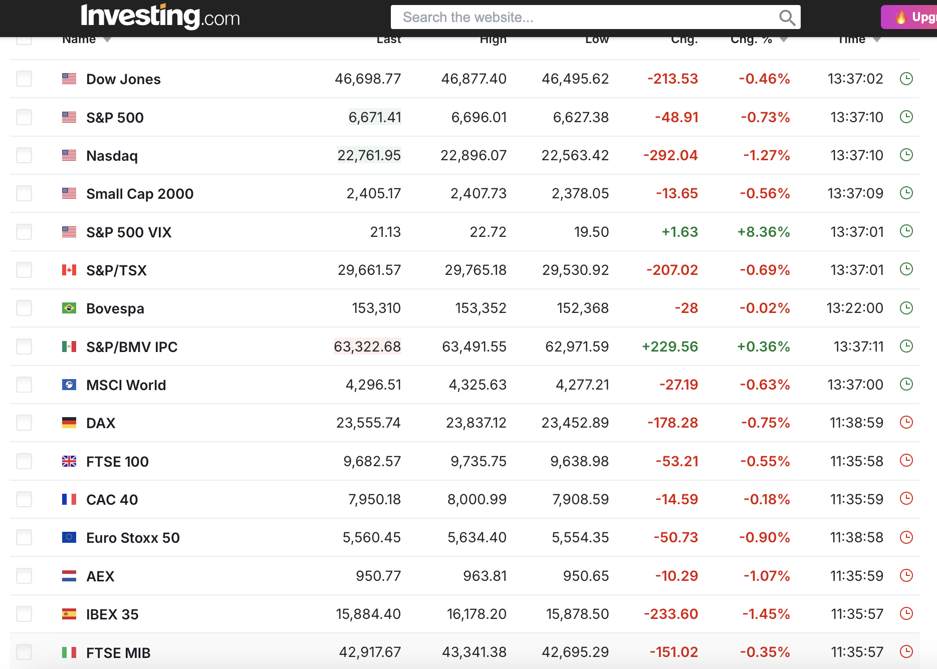 onde o sentimento é negativo nos mercados, a nível global