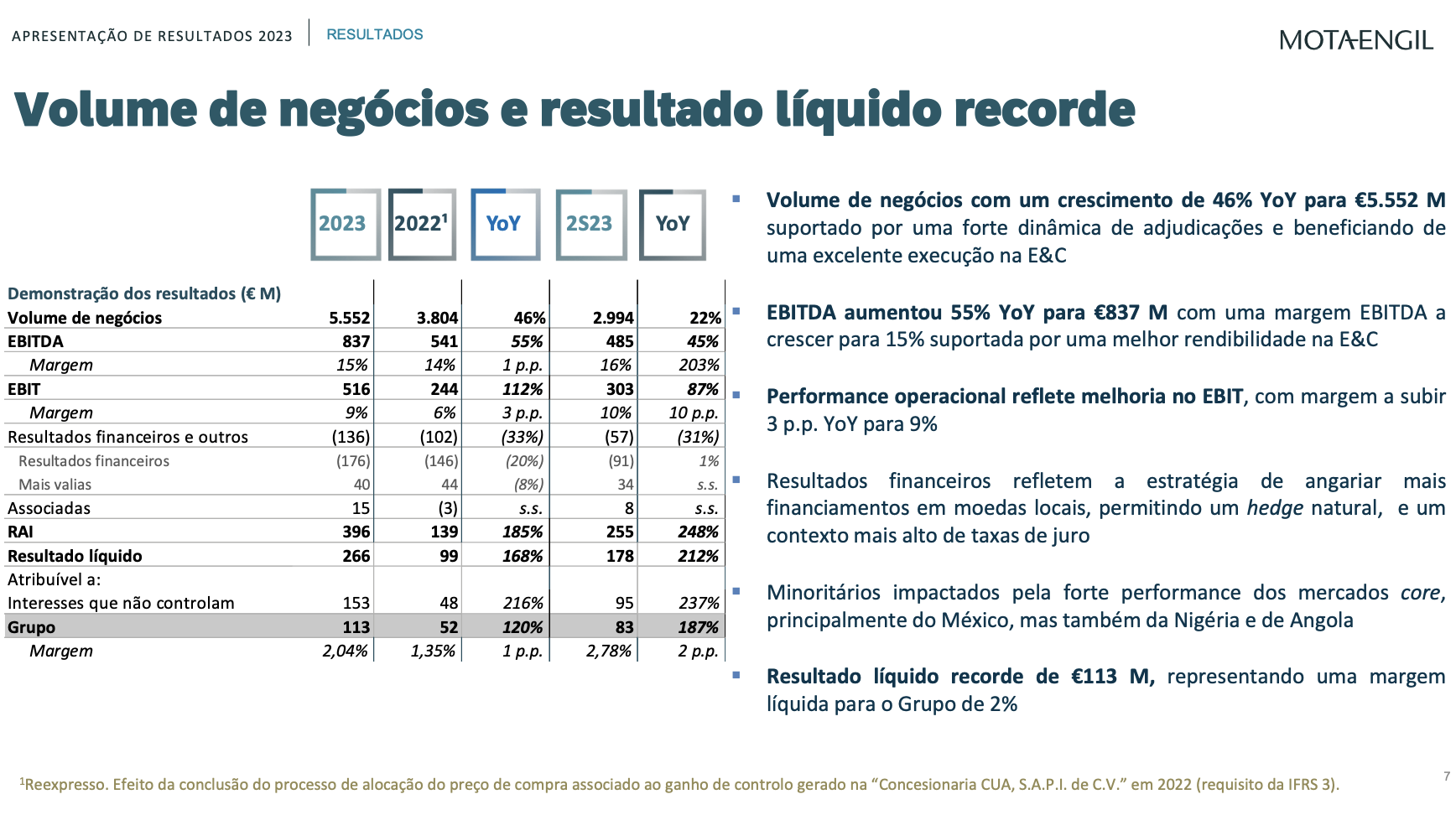 Eu não escrevi que os resultados foram bons, escrevi que "não foram maus" e isso não deixa de ser verdade se compararmos os resultados atuais com o histórico de resultados da Mota Engil.
