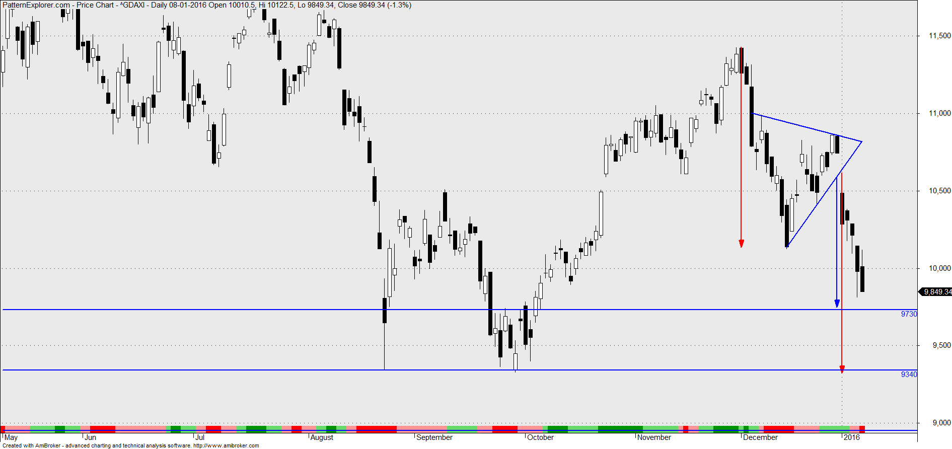 Só para lembrar que o martelo invertido, sobretudo como o que se formou nos futuros DAX hoje, é uma vela de inversão, podendo dar inicio a subidas.