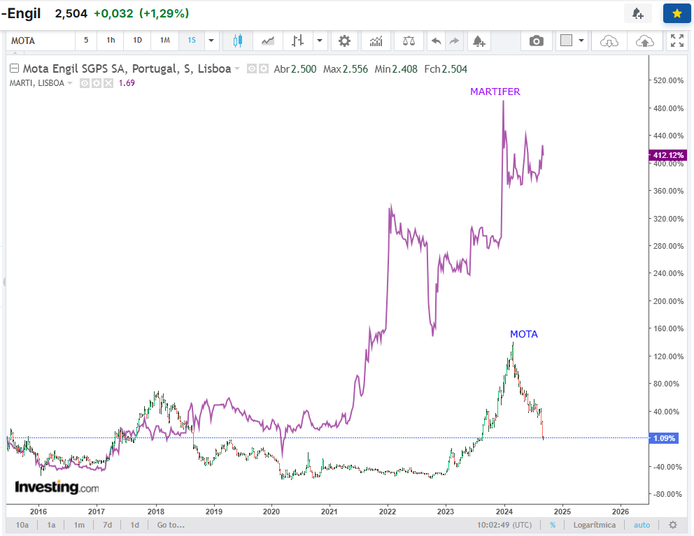 Caro Vale, pode incluir no seu gráfico também a empresa de construção Sacyr SA, só para comparar com uma empresa fora do universo Mota.
