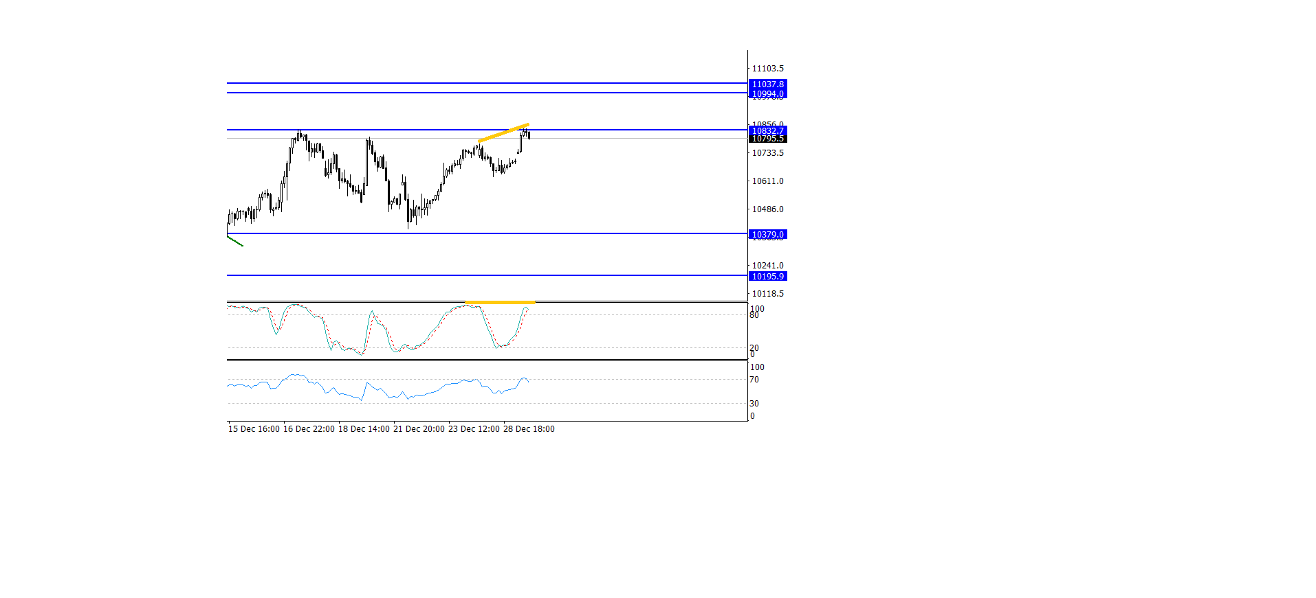 nos graficos de 1h e 4h parece q esta zona dos 10830 podem ter alguma relevância técnica