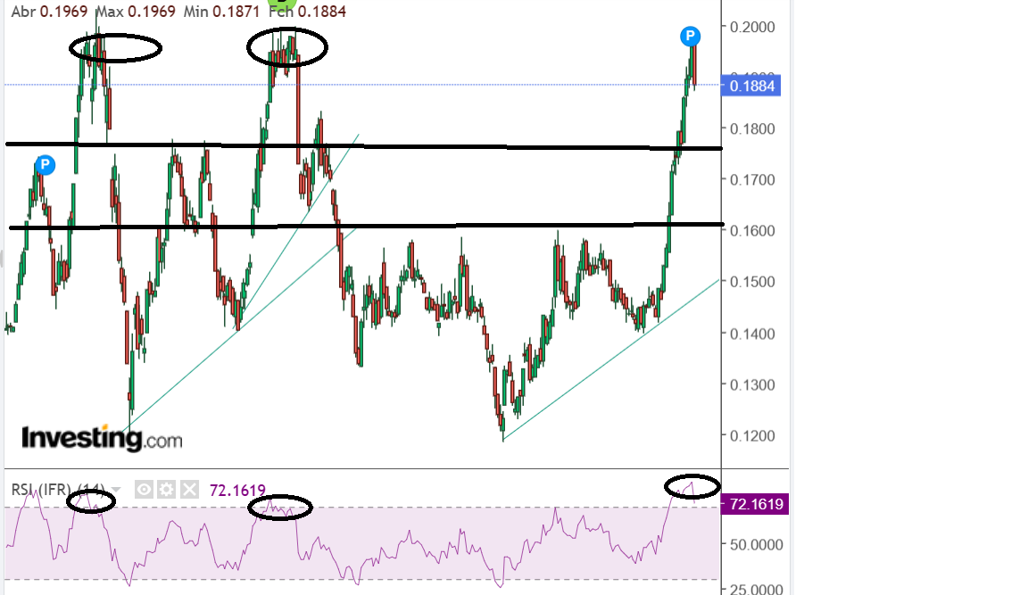 Vamos ver onde nos leva a marretada, se a zona dos 17,5 cts não resistir é muito provável que venha testar a zona dos 15,7 cts