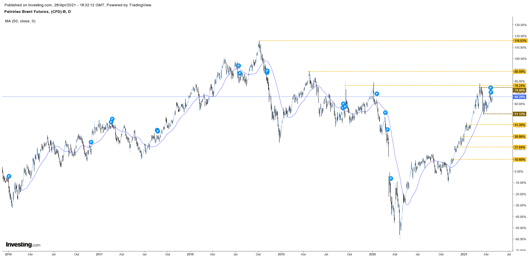 com máximos de quase dou outubro 2018 e serem batidos, no wti, não sie se teremos condições.