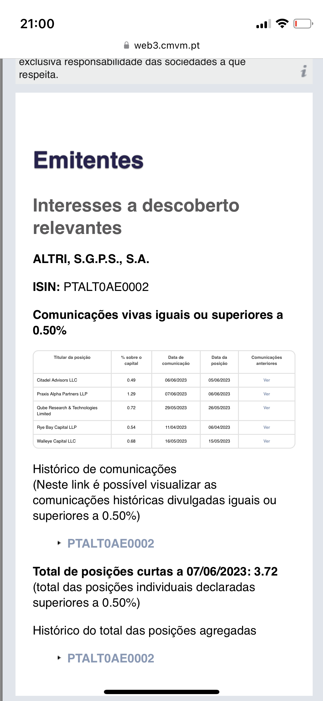 número, por aqui vês quanto a Altri está debaixo de fogo. Numa situação normal correria a fechar o gap, assim está aqui encalhada. E veremos se o fecha, ou se continua o malho. O problema é que esta empresa valorizou barbaridades, reduziu pouco a dívida, vai ter de fazer investimentos que só terão retorno daqui a uns anos... não sei não!...