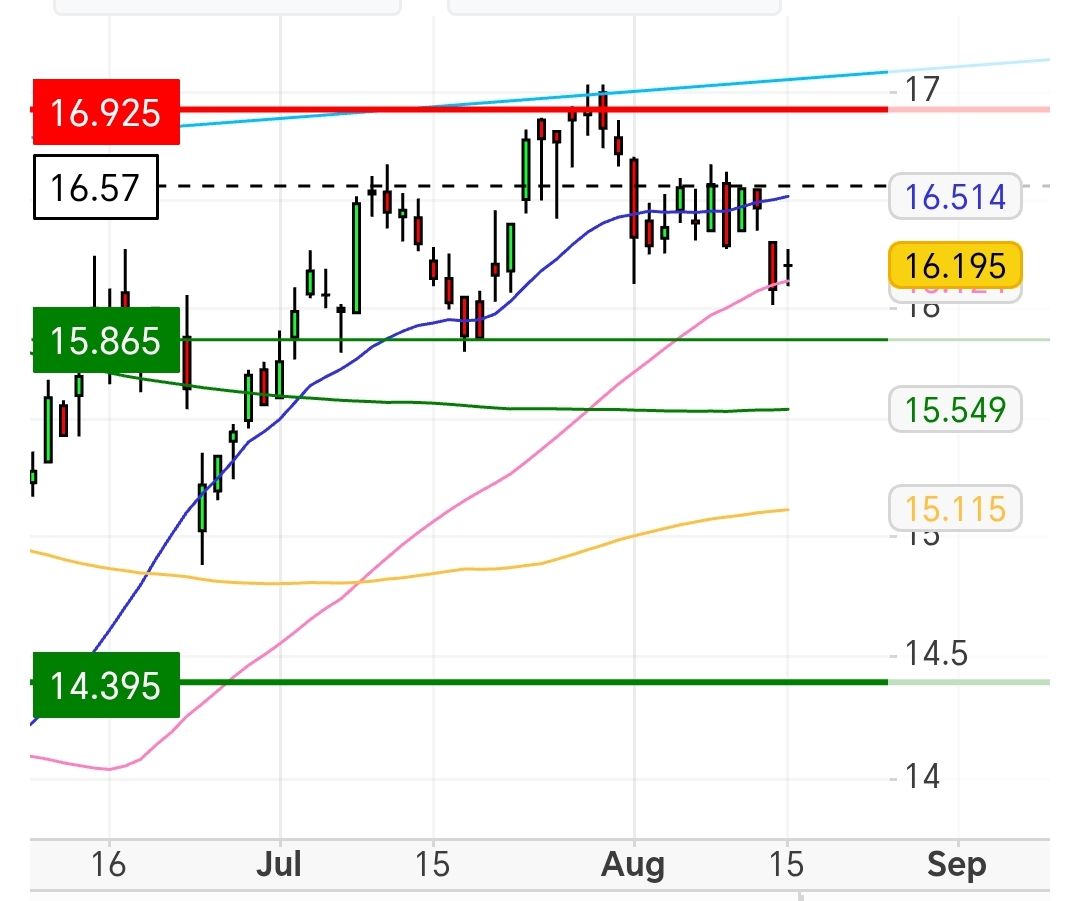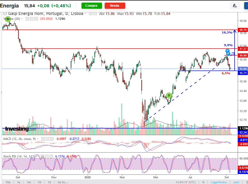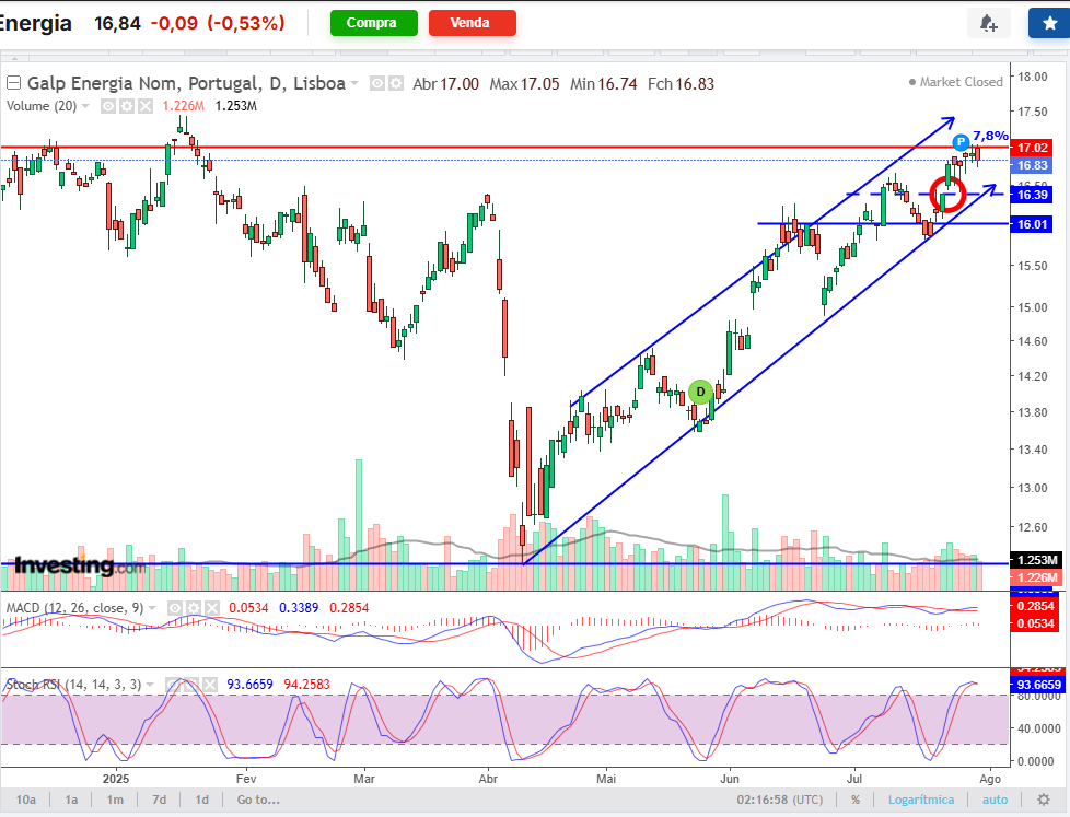 A Galp fechou recentemente um gap técnico em €16,66, e prepara nova subida até €17,195.