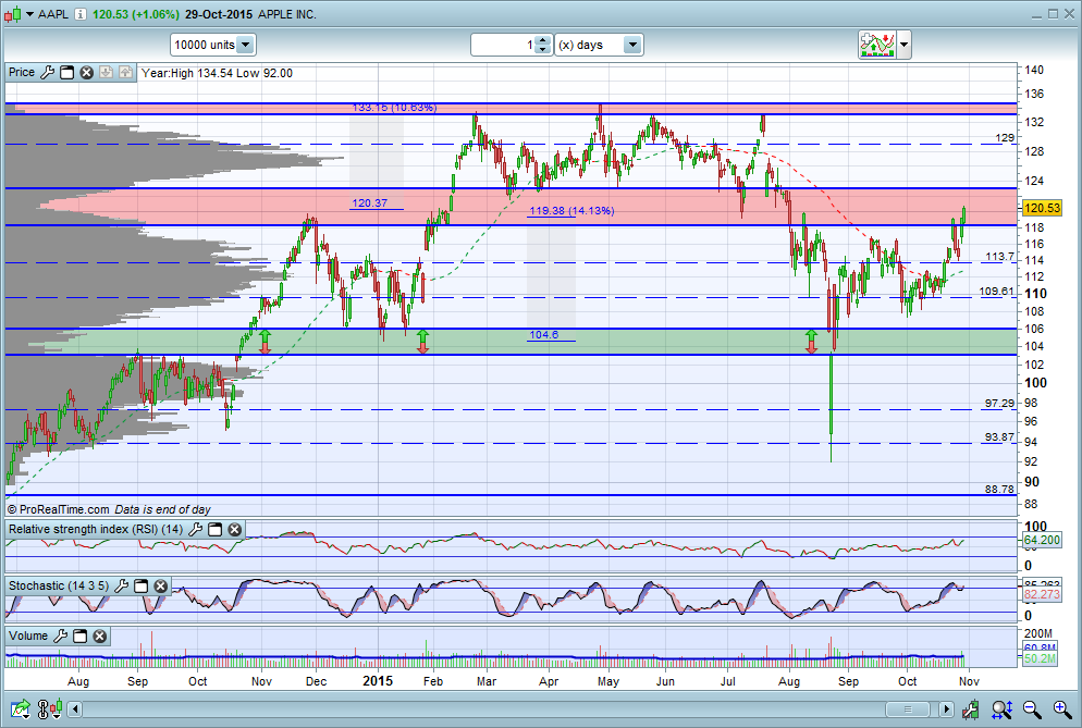 Só para dizer que neste momento não tenho apple. Desde que comecei a seguir fiz dois trades com boas rentabilidades. O último vendi a 118,xx.