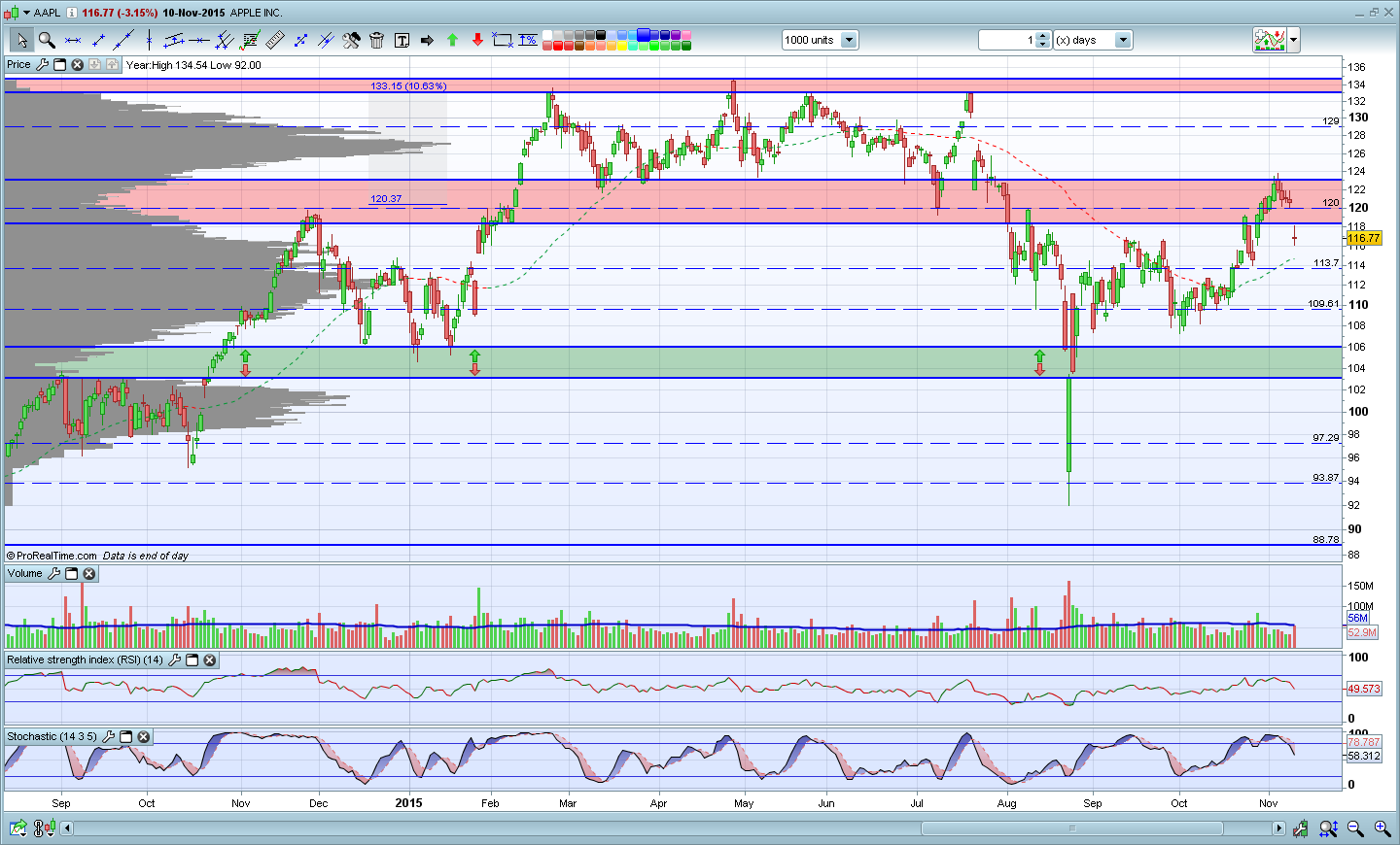 Obrigado Ricardmag, mais uma vez pelo gráfico. AApple está perto do sobrecomprado e numa zona de resistencia. É certo que tudo pode acontecer mas talvez nao quebre esta resistencia á primeira. Vamos ver como corre o dia, mas ao menor sinal de falta de força, meto os lucros ao bolso para o fim de semana.
