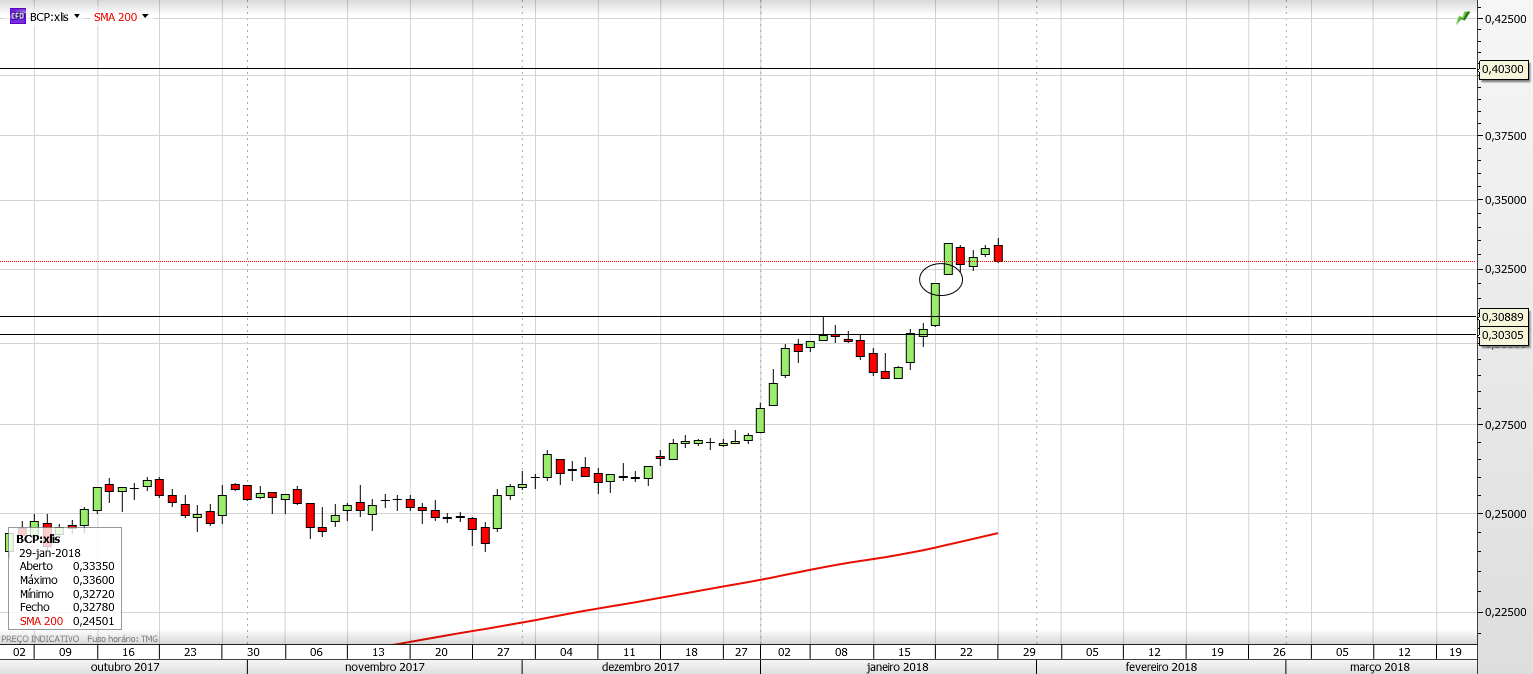 Se estou dentro ou fora? Tento estar sempre dentro neste Bull do BCP. Portanto, dentro com o meu stop nos 0,325X para reentrar mais em baixo se for essa a vontade do mercado.