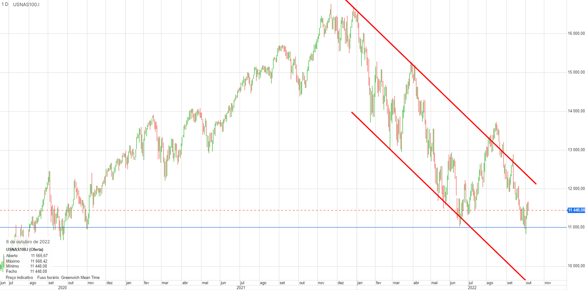 Àlvaro Escreveu:Nirsup, o Nasdaq100 prepara-se para furar os 11 000 pontos e deverá ser já hoje. A coisa tem aspeto de querer vir mais abaixo, é isso que diz a tendência e os números do emprego ajudam muito poia assinalam inflação.Um fecho abaixo de 11000 poderá significar uma queda mais profunda.