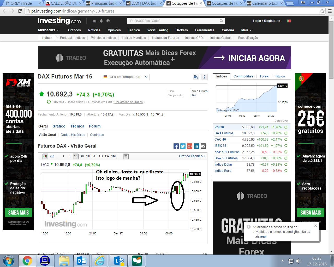 Eu tava com a plataforma aberta...mas ontem tive Assembleia de Freguesia ate tarde...e tava cansado...pelos futuros a noite toda...tava mesmo a ver..."aj e tal...isto vai descer um pouco e no cash arranca"...tive mesmo assim para fechar longos a 10630 e abrir curtos...opa...dito e feito...mas variou 100 pts assim do nada...e eu atonito a ver...e na duvida...fica-se quieto!!!!