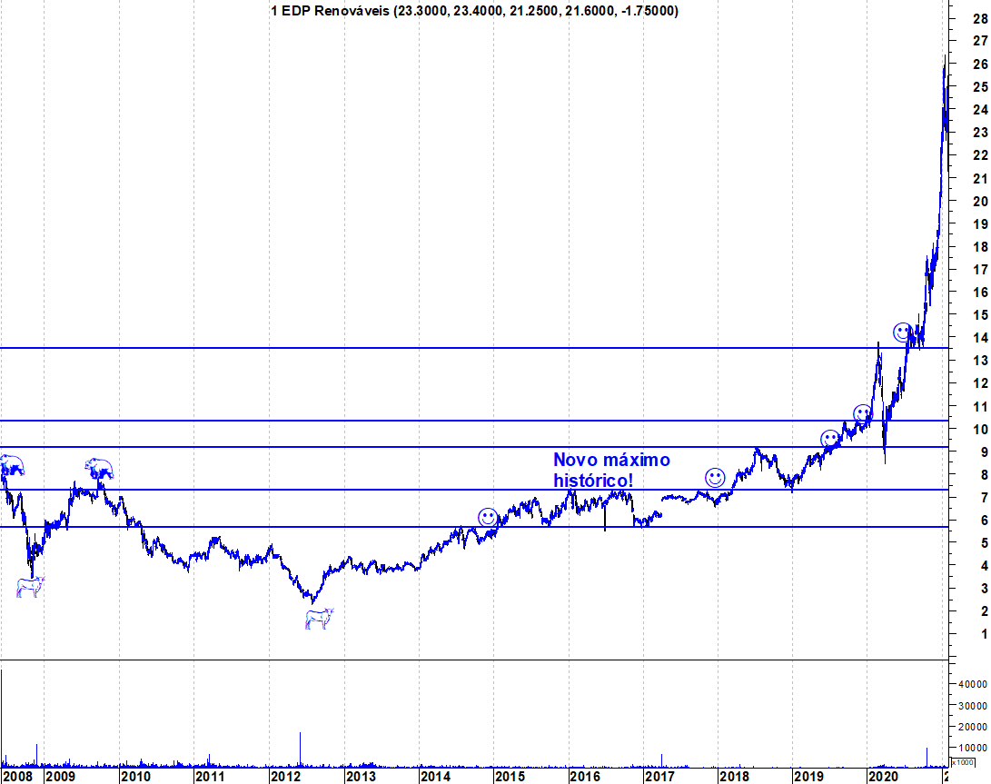 A EDP Renováveis multiplicou por mais de 11 o seu valor durante este "Buull Market". Olhar para estas quedas no contexto do "Bull Market" gigantesco relativiza a dimensão destas quedas.