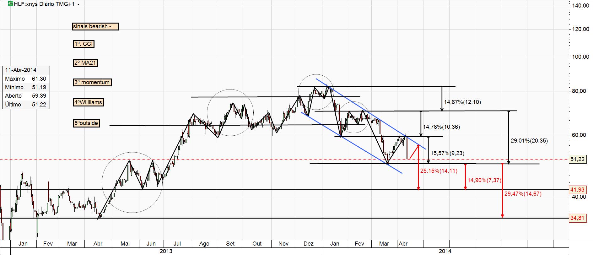 Na HLF é toda bearish e o desenho dos cincos sinais são fáceis de identificar e para não sobrecarregar o gráfico, não os desenhei.