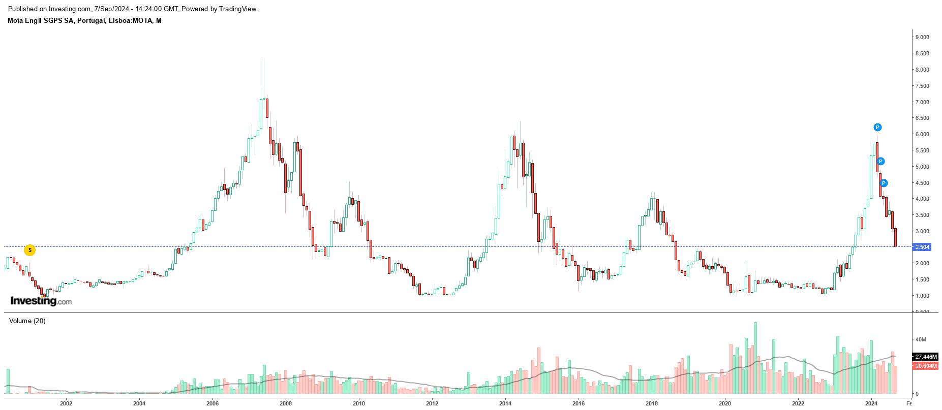 Vamos então retomar a lugar do pendura. Estamos num ponto decisivo. Penso que uma quebra de 2.50 acionaria todas as campainhas na Mota, pelo que se o abutre voltar à carga a Mota terá de se munir de lancha chamas. :shock: