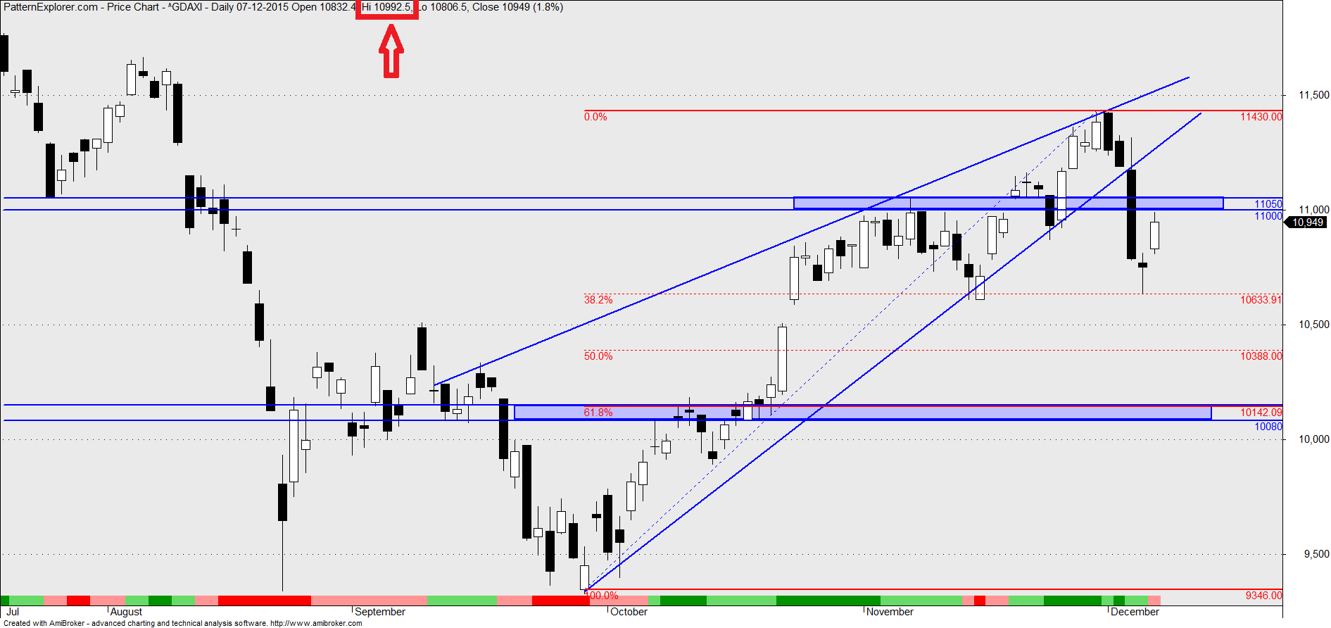 Se fosse uma questão de gaps até teria sido bom para quem olha o DAX numa perspetiva longa, que a última vela -ou a sua sombra...- tivesse tocado o dente inferior do garfo. Ficava o assunto resolvido.