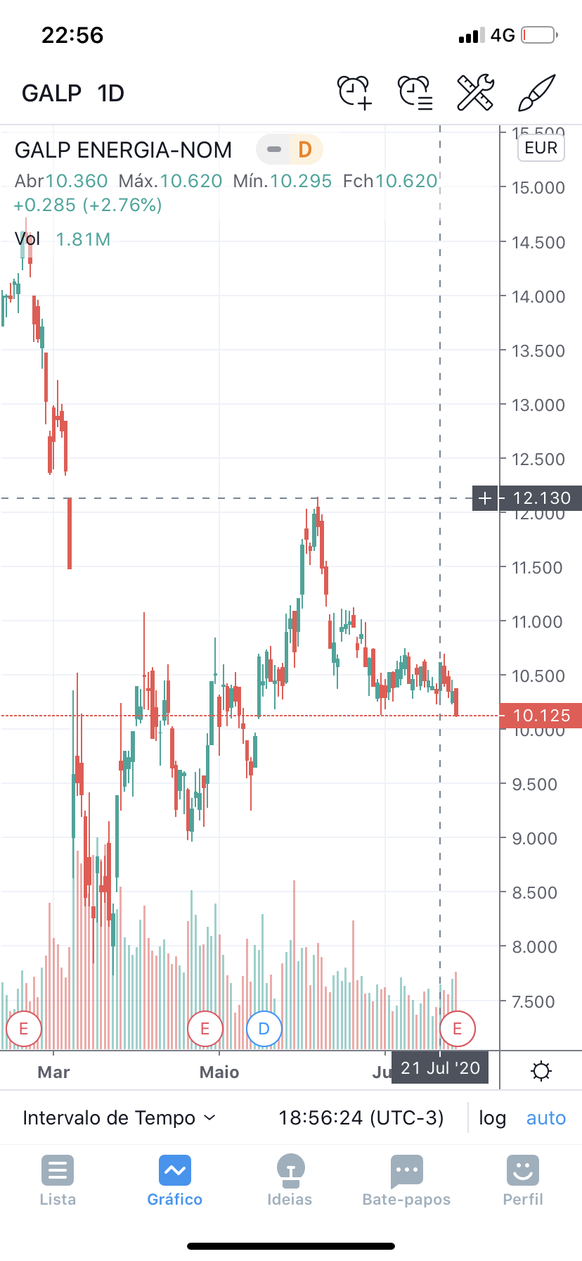Quando parecia ir rumo aos minimos do ano consegiu reverter a tendencia e apontar a voltar acima dos 10 euros.