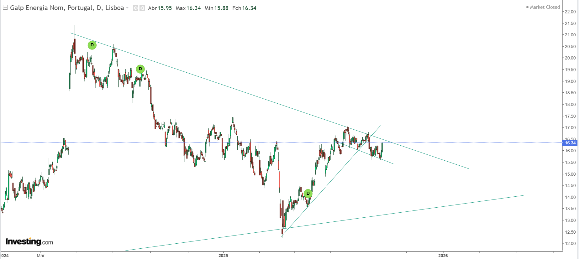 A Galp fechou recentemente um gap técnico em €16,66, e prepara nova subida até €17,195.