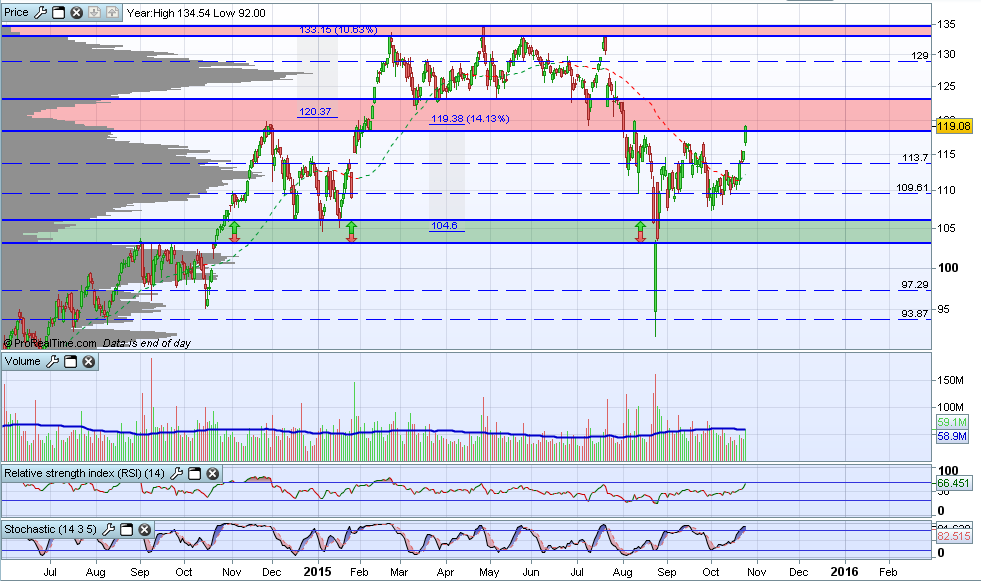 Um fecho acima desta linha, com a confirmação amanha, a é uma belíssimo sinal bullish a caminho dos resultados a 27 de Outubro.