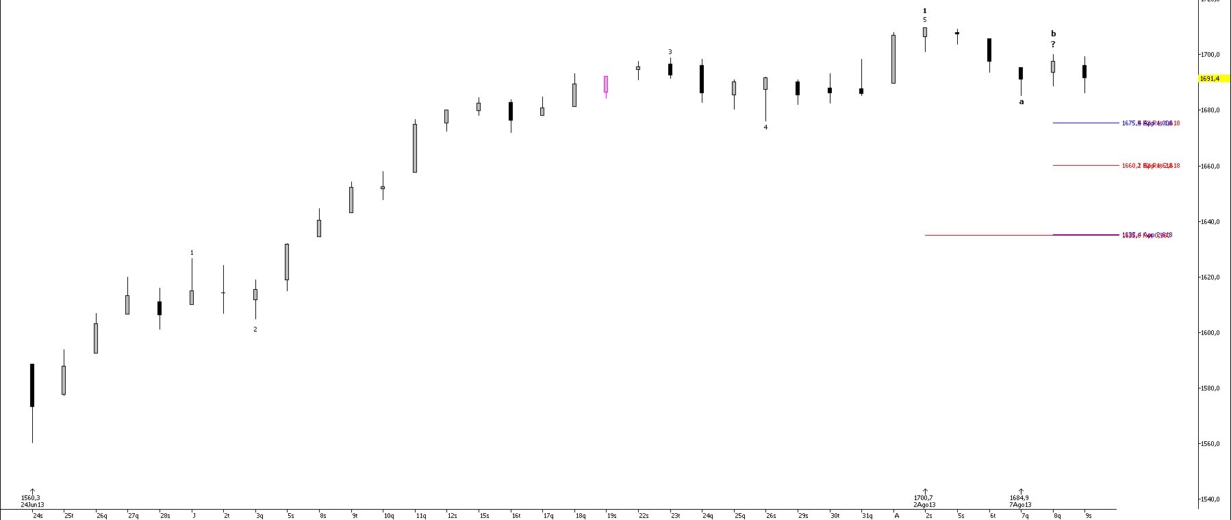 Neste momento verifica-se o início de uma onda correctiva de menor grau, iniciada no dia 2 de agosto.