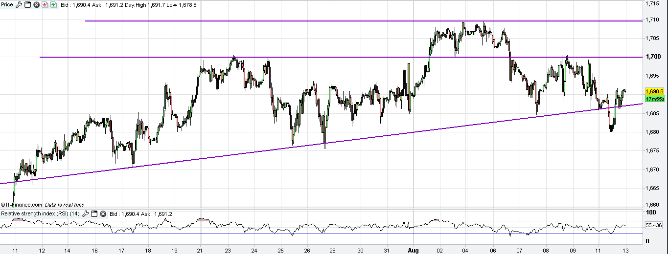 Parece estar a fazer um fundo agora.É provável que faça um swing para cima.Até aos 1690 +/-.