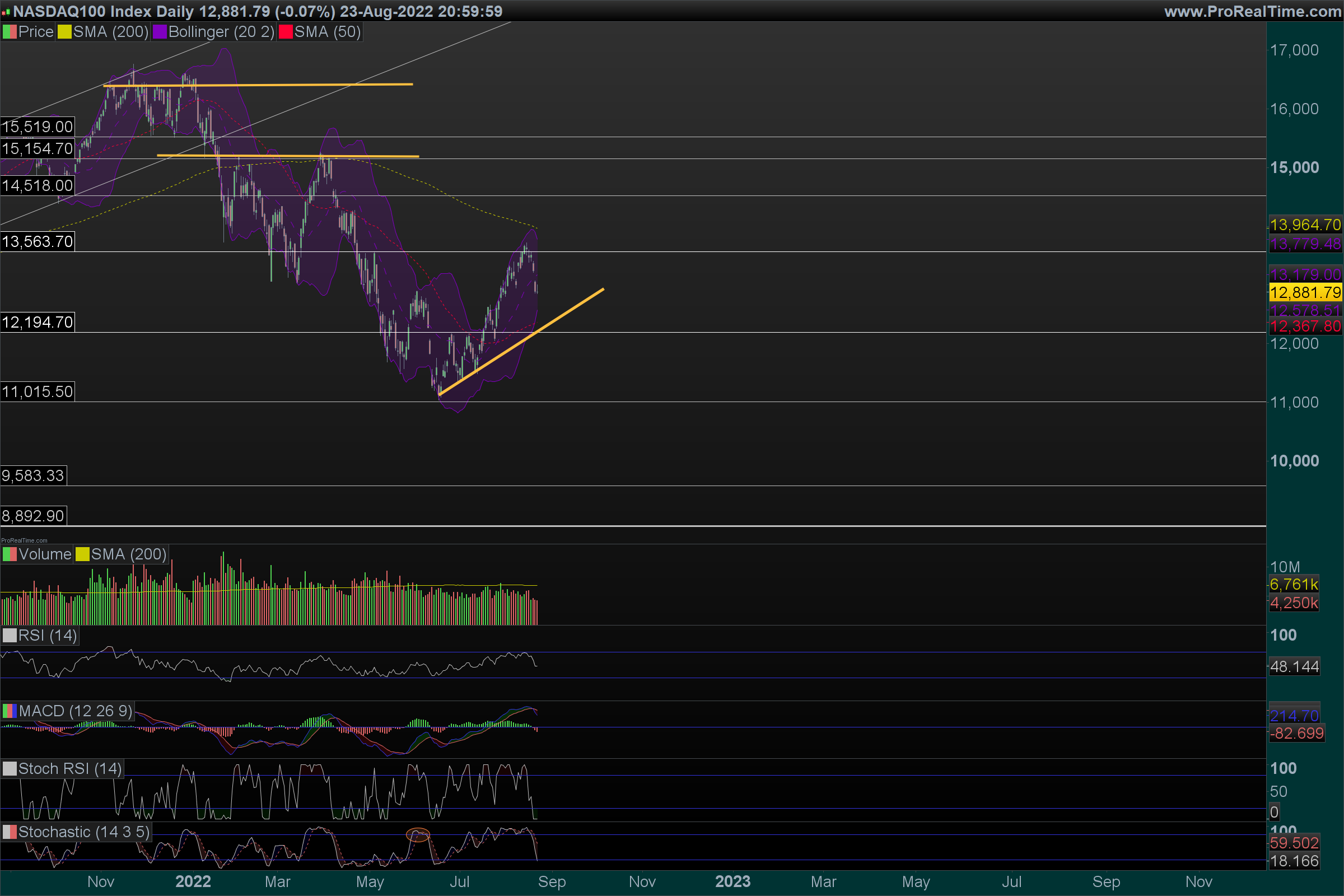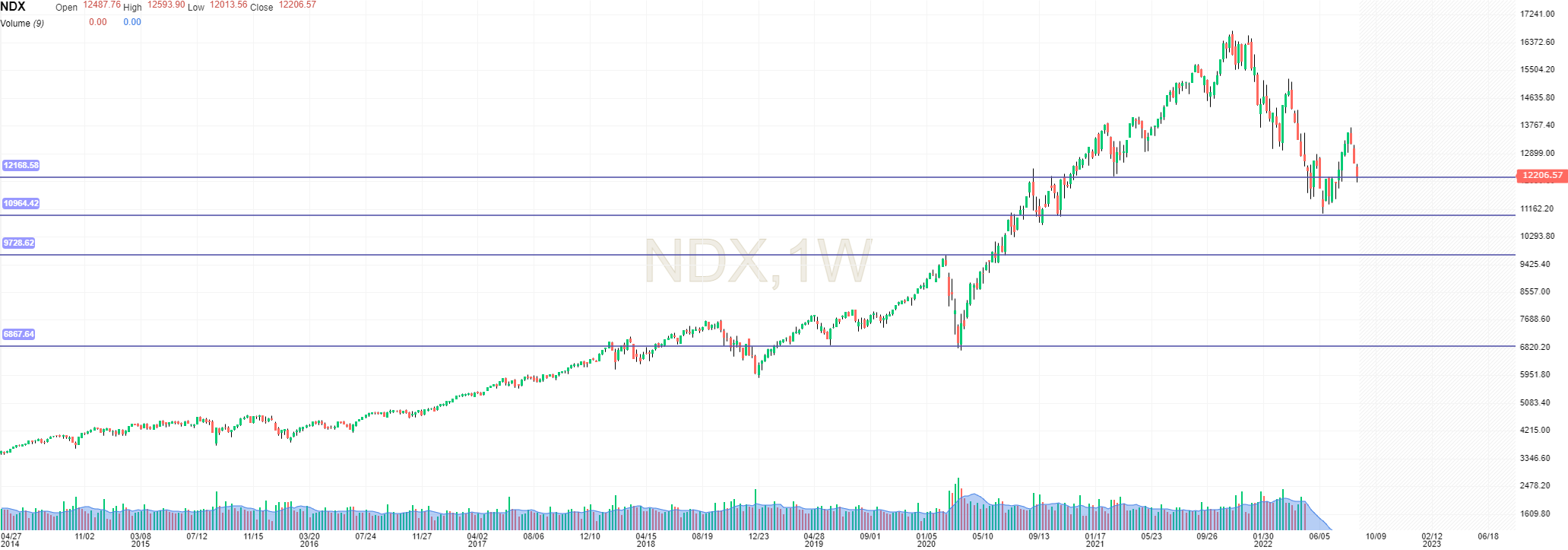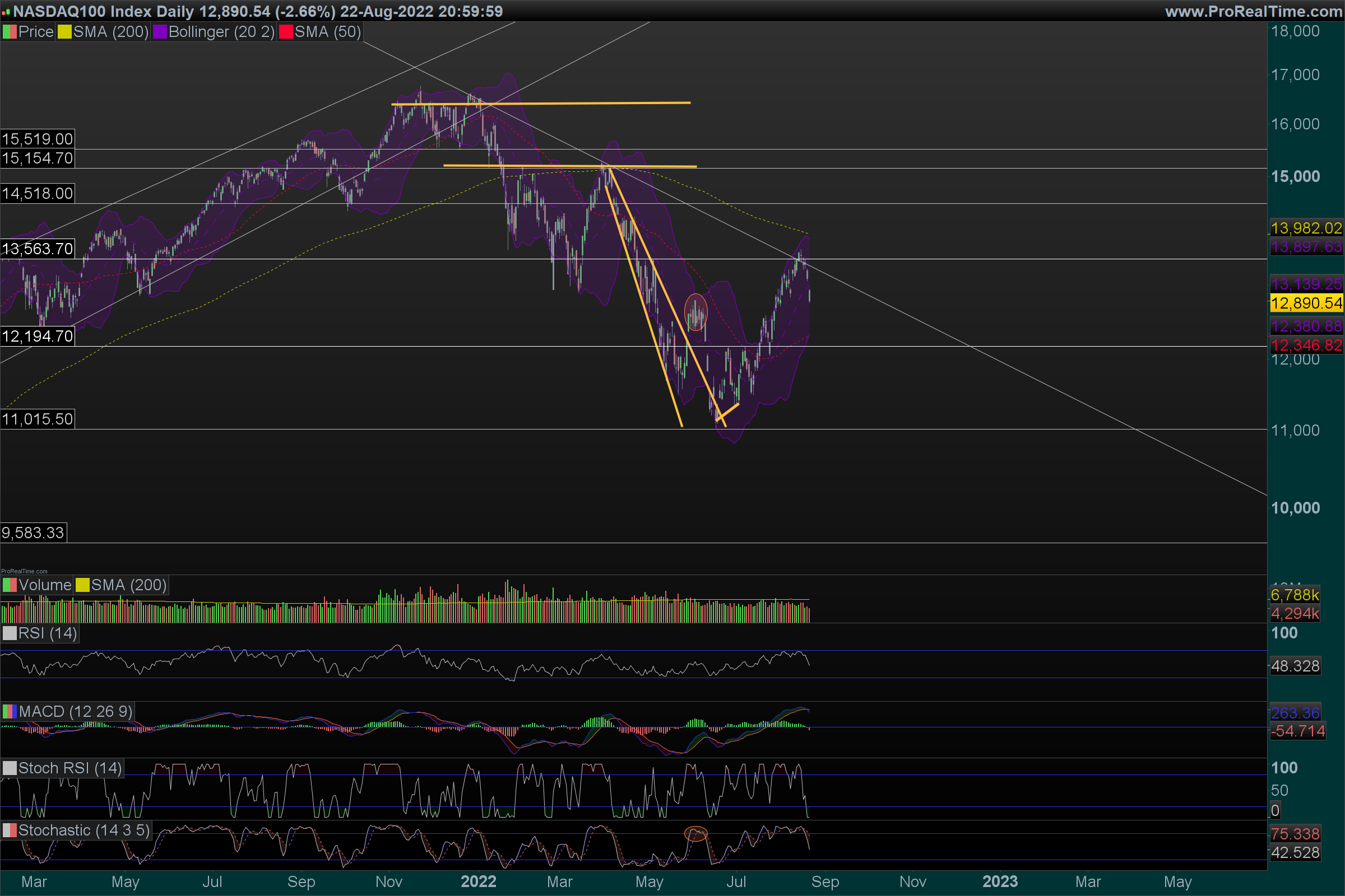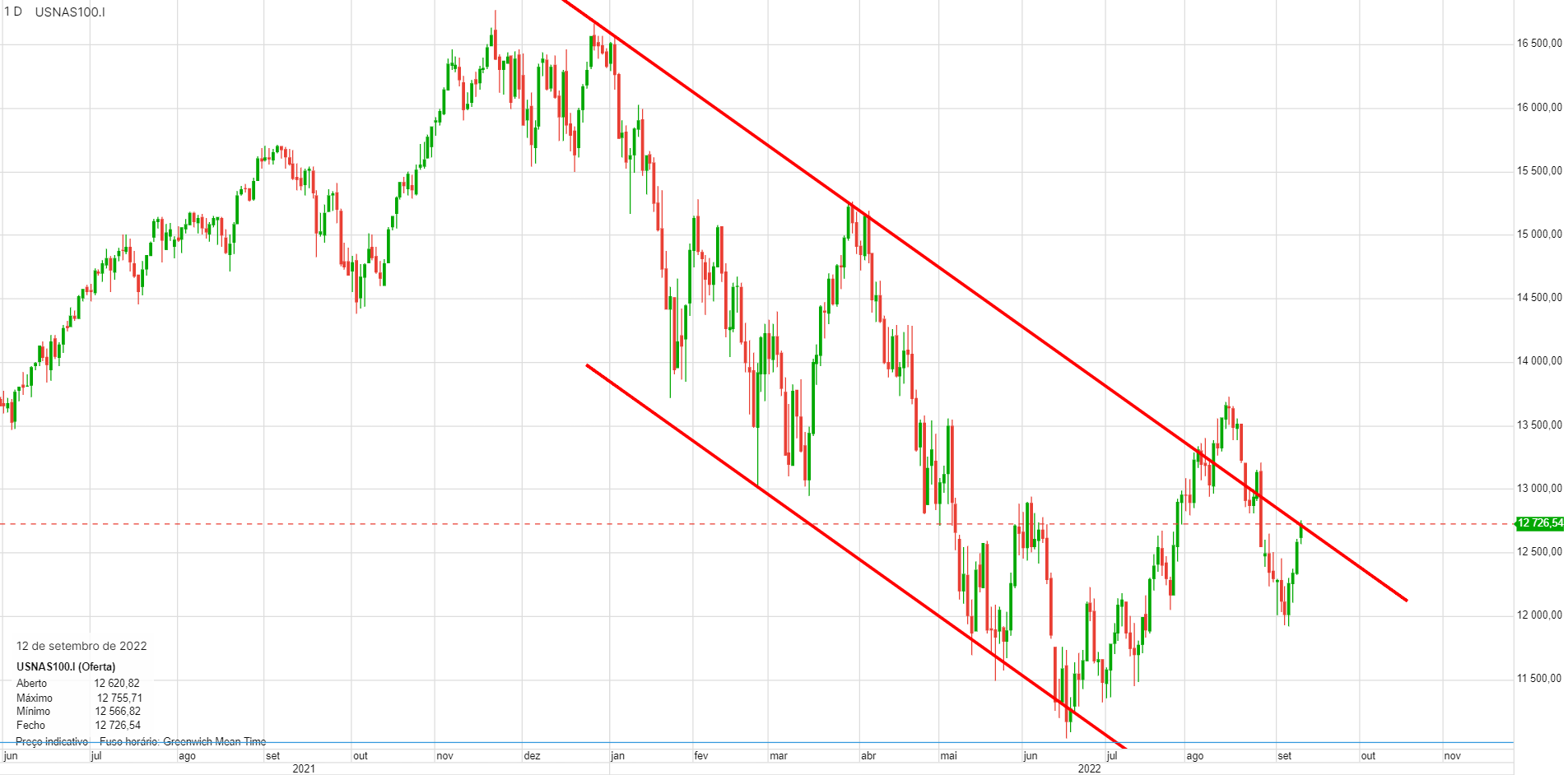 Aqui temos de estar atentos aos 12250, no caso de quebra temos continuação do bear market.