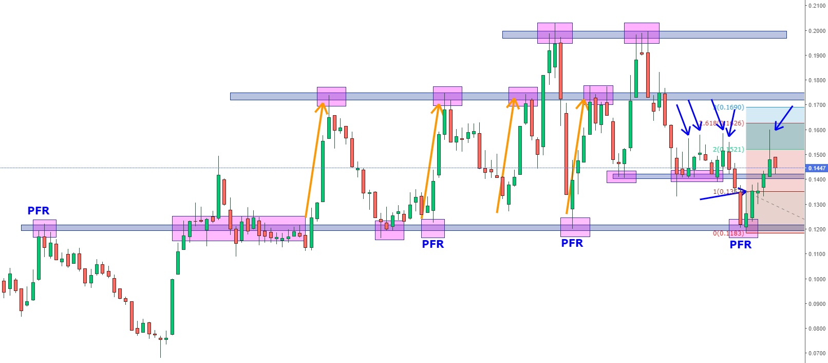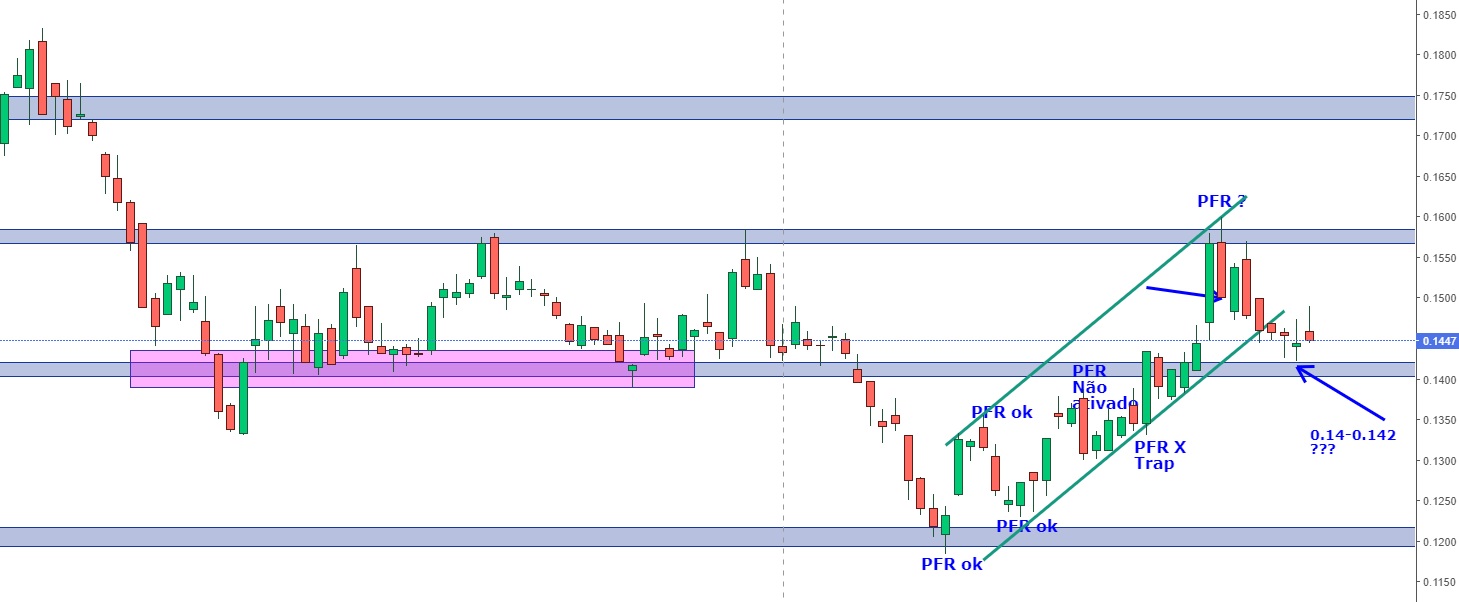 No gráfico diário o pfr também foi positivo. Foi praticamente ao milimetro ao objetivo 0.14-0.1420 e termino assim a sua análise.