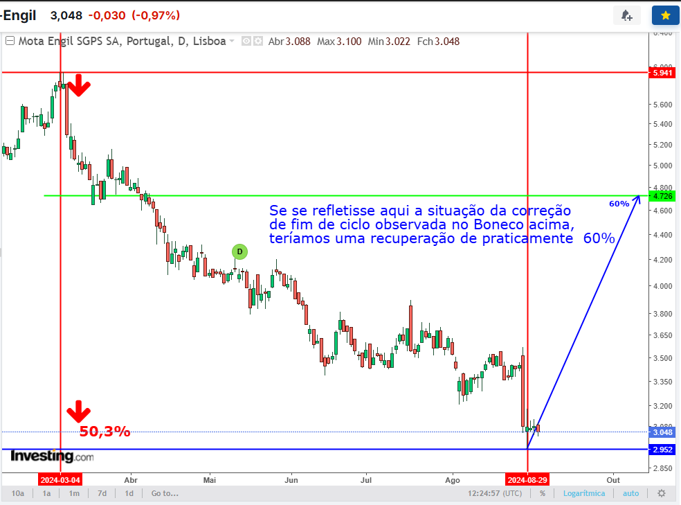 Qual é o sonho dos vendedores? Que os índices corrijam e quem tem Mota desate a vender. Pode dar errado, a Mota tem um suporte em 3 euros e aí os touros poderão entrar a comprar e as posições curtas ficam desconfortáveis e terão de emendar a mão.