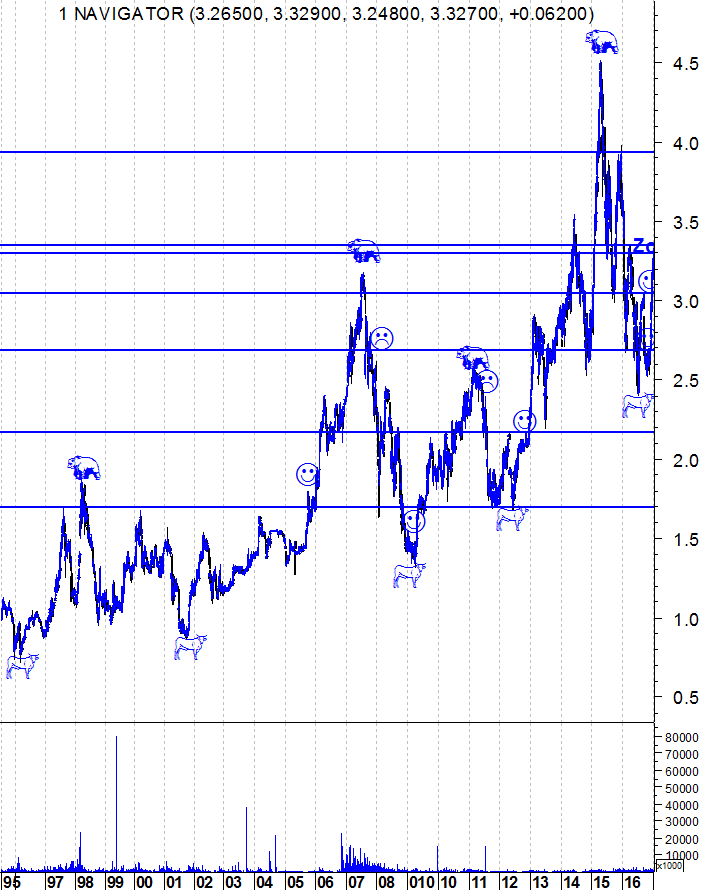 Desde o inicio de janeiro que andamos aqui na zona de resistência nos 3,30...vai e não vai um pouco mais acima e não passamos disto...