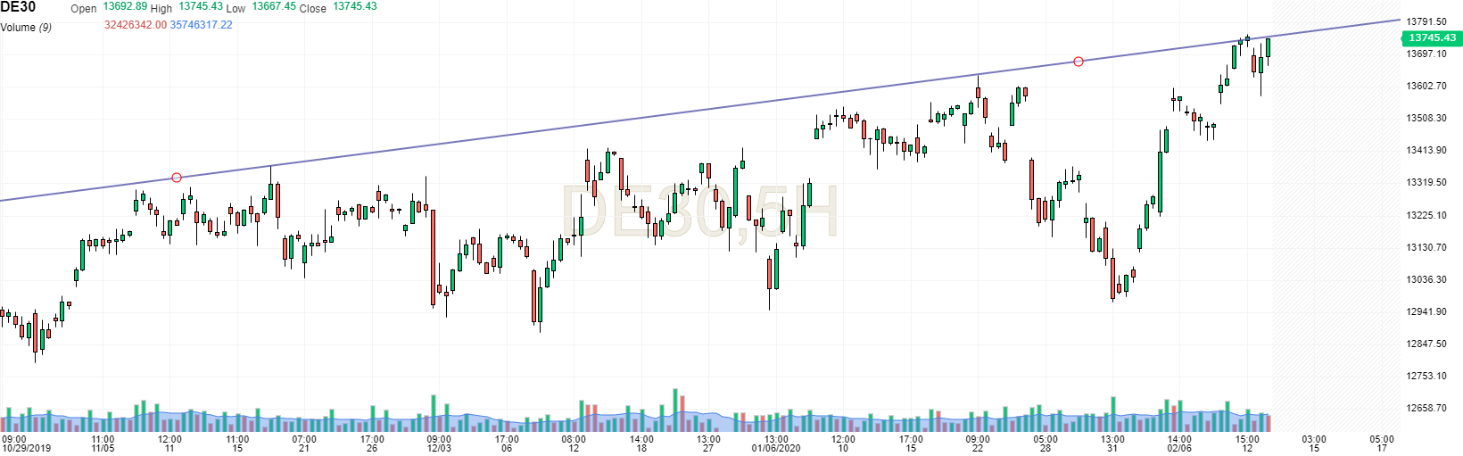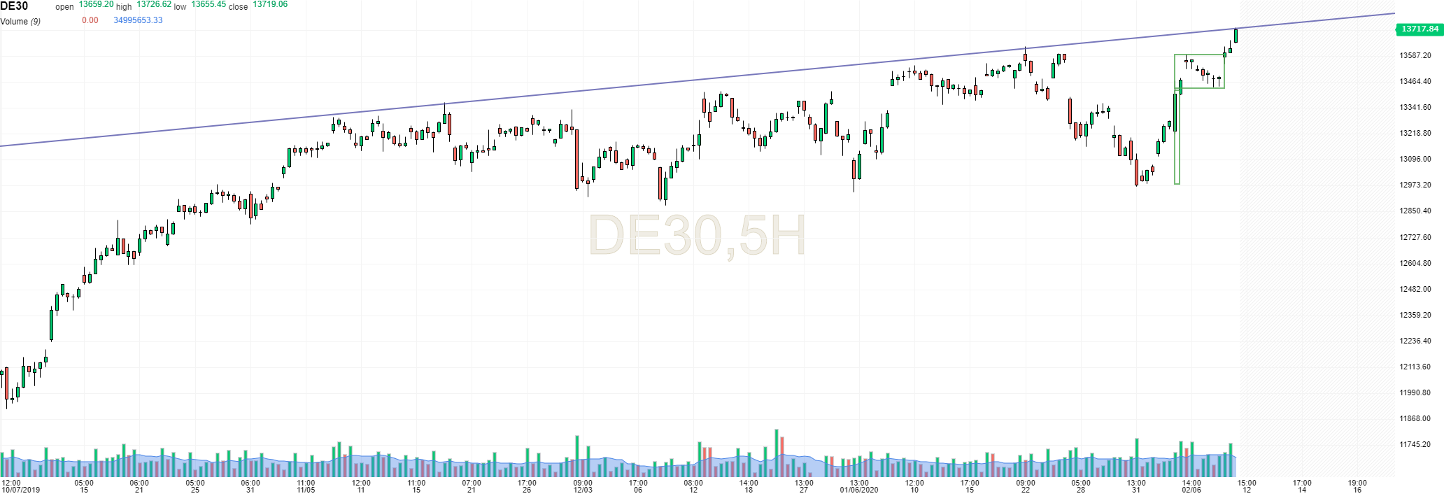 DAX em máximos históricos. Parece ter uma bandeira nas 5 horas.
