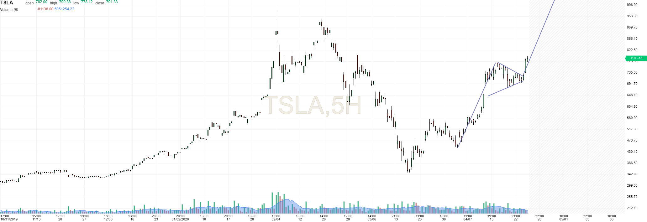 No dia 4 de Abril, andava a TESLA pelos 500 USD, fiz uma recomendação de compra da TESLA a alguém que me desafiou para dizer que investimento faria nas bolsas americanas.