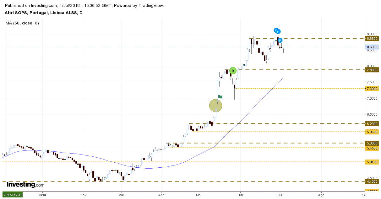 ALTRI está potencialmente a desenvolver um Duplo TOPO e a caminho do suporte dos 8 euros , abaixo deste suporte poderá corrigir para o suporte seguinte nos 7 euros .