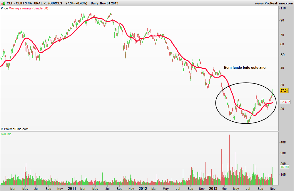 Olha, quando a CLF é preciso ter cautela para já, é verdade que a vela é verdinha, mas face ás subidas desde os 20 USD ( desde inicio de outubro) até agora é uma valorização fantástica, e pode fazer quiçá em breve um reteste ao suporte pelos 24 USD ( o que até seria "saudável")