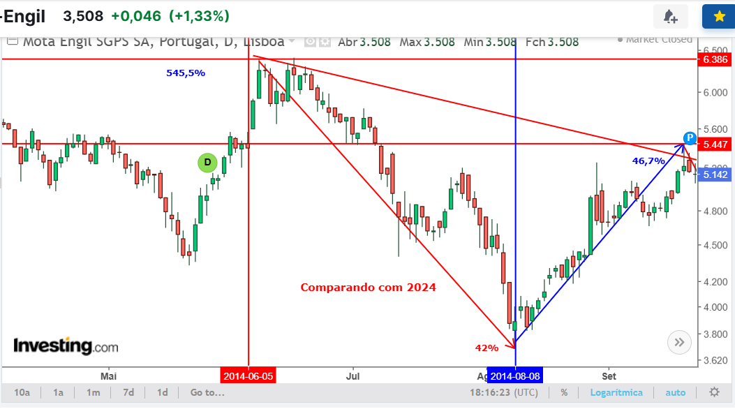 Posto isto e se nada mudar, continua valido o cenário de máximos do ano (duplo topo), sendo que no caso de vir a fazer novo máximo, abre uma porta de gigante para eventualmente poder fazer novo máximo histórico!!!).