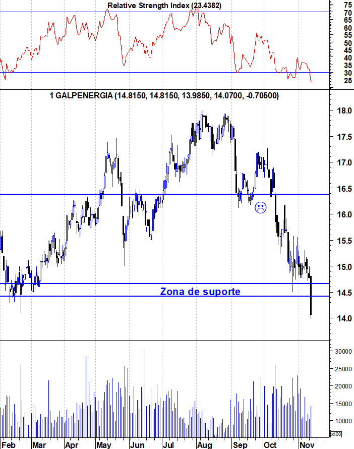 A GALP embora tenha uma elevada corelação com o petróleo , o que é compreensível , olhando para o gráfico , em termos técnicos , está numa situação complicada .
