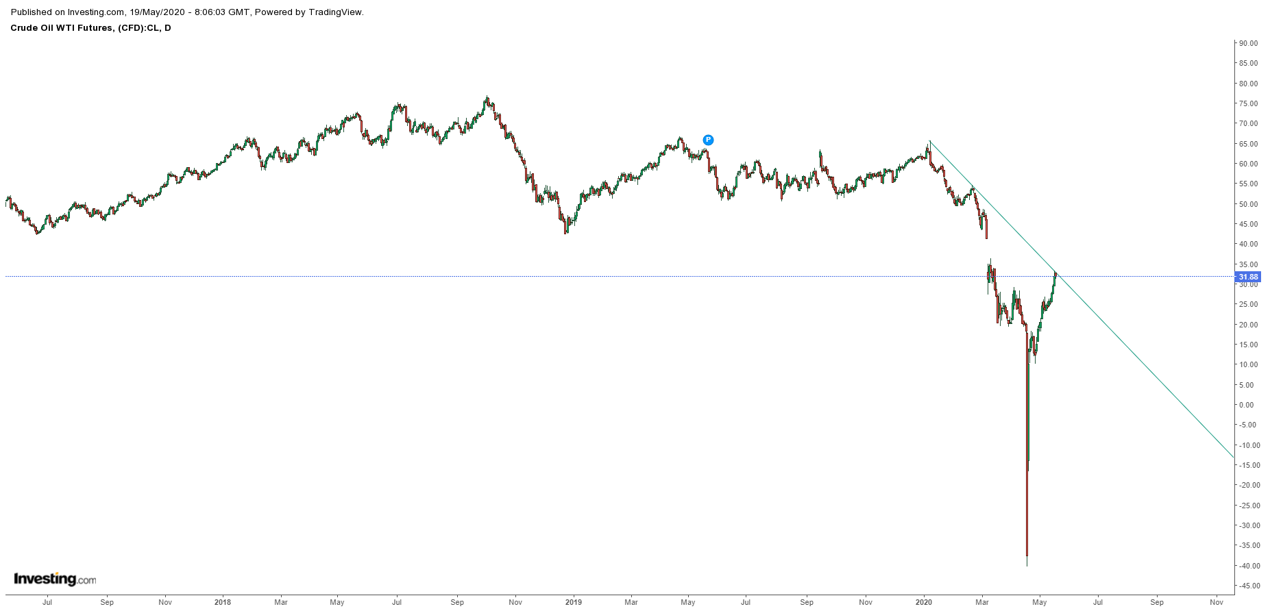 Eu ando sempre ao contrário dos outros. Quando os petroleiros estavam parados e já não havia stock, as reservas eram diabólicas e o oil ía a -100, as imagens de satélite pronunciavam uma catástrofe e por aí fora eu entrei longo a 17.55.