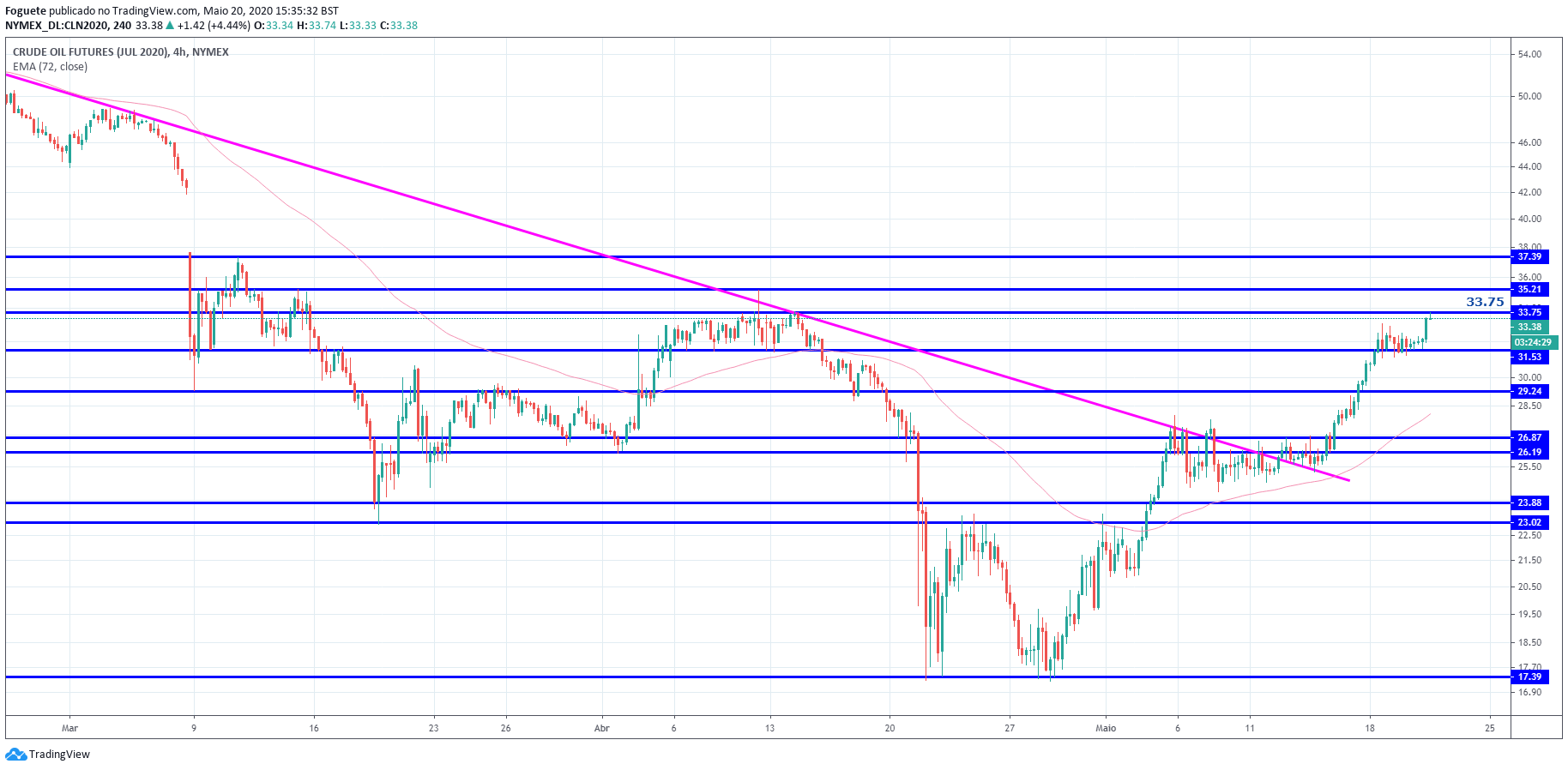 Alguém pode fazer uma análise técnica ao brent? Qual será a próxima resistência? Deu um belo esticão hoje.